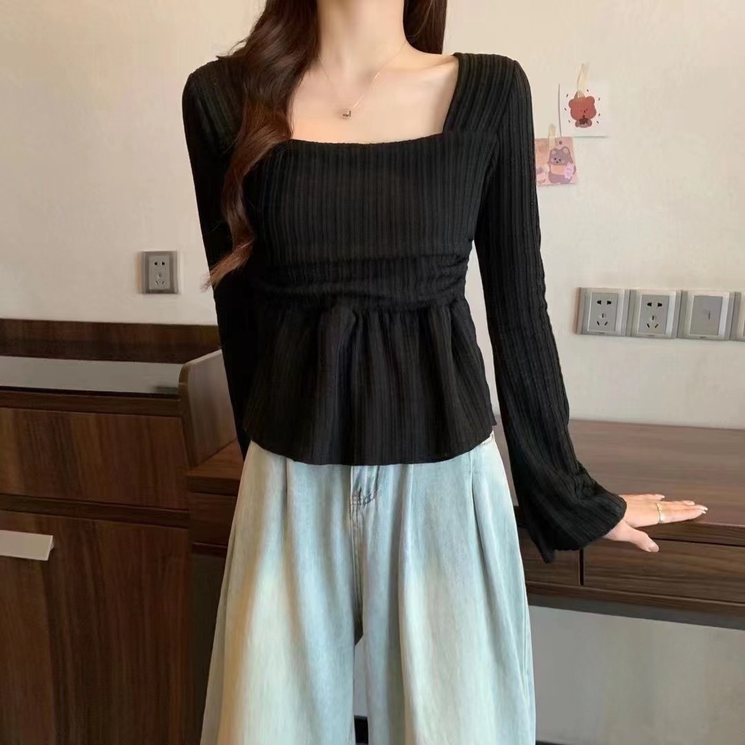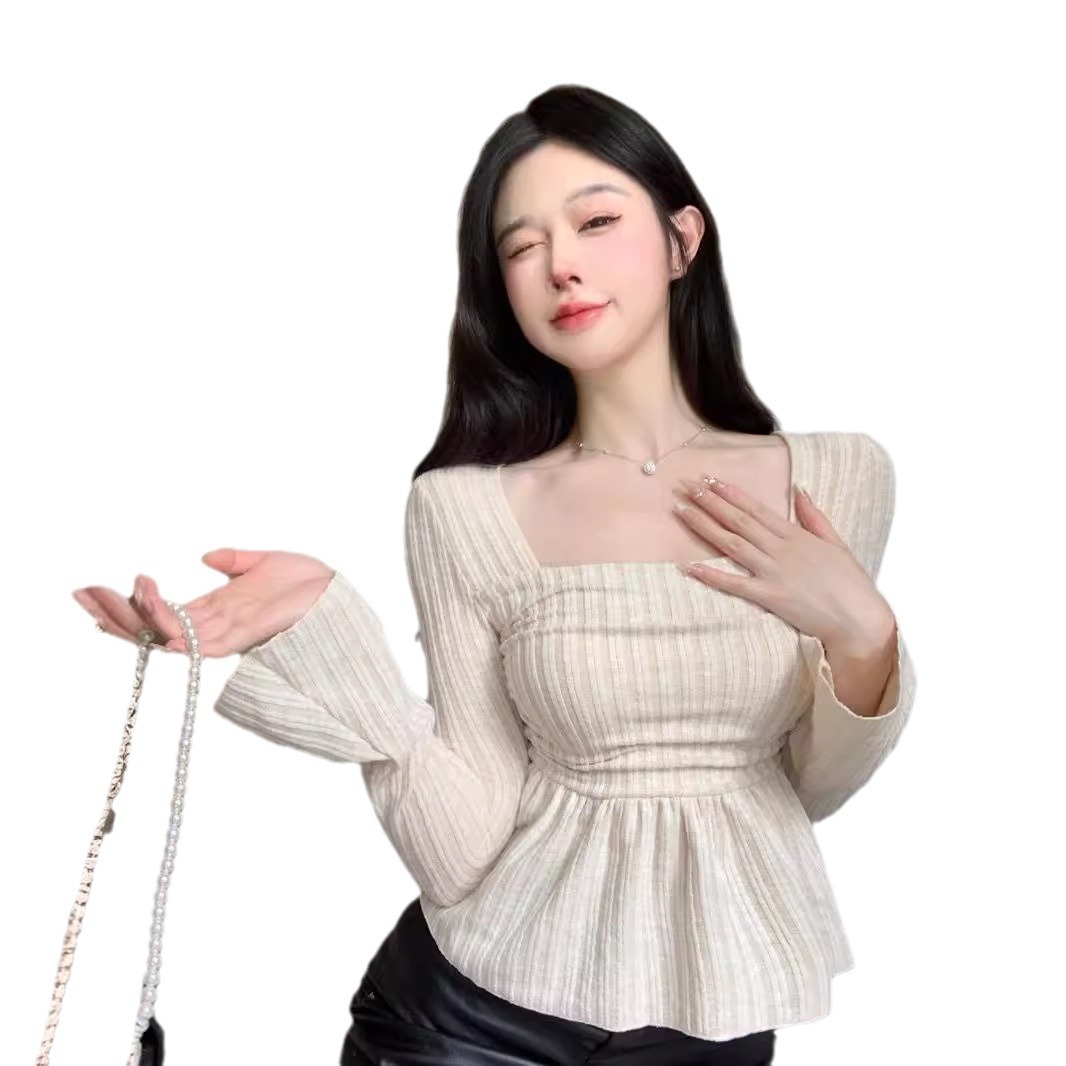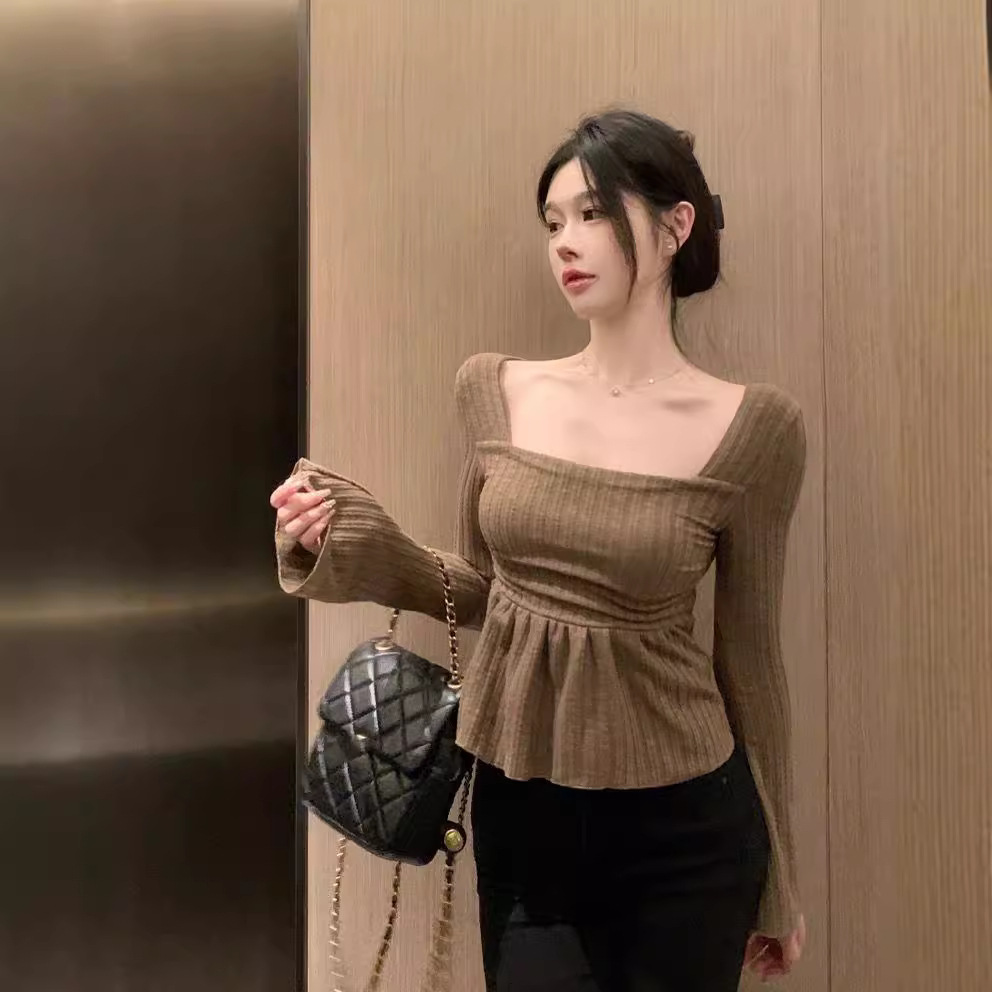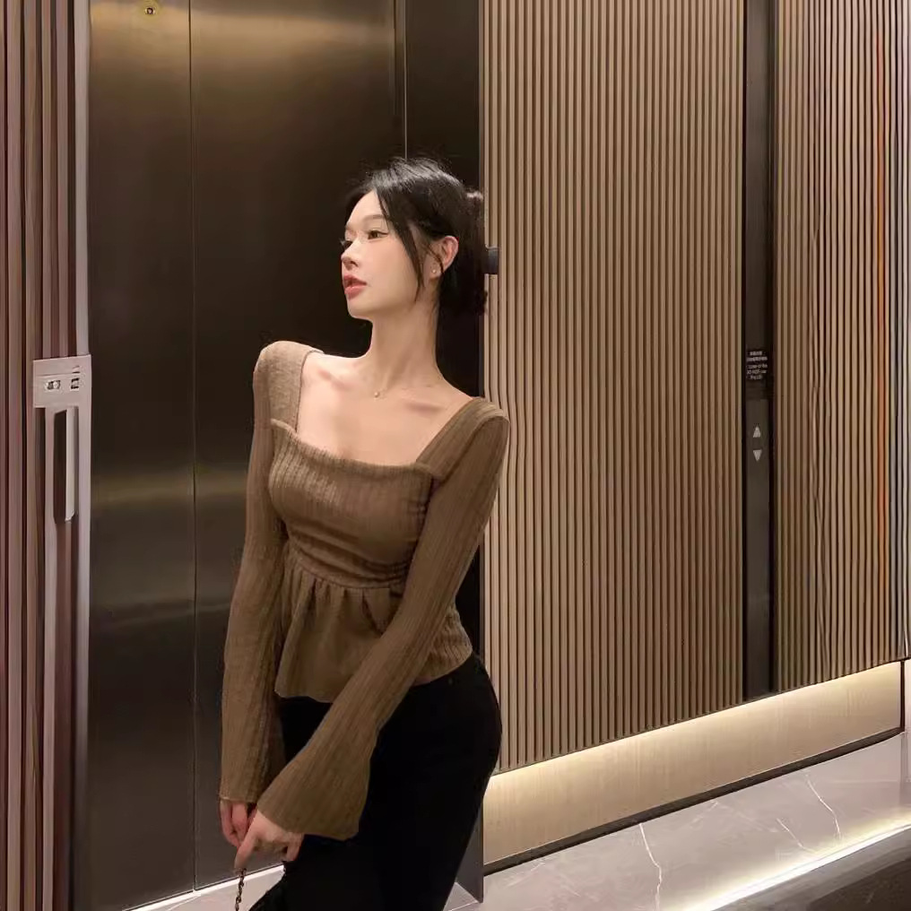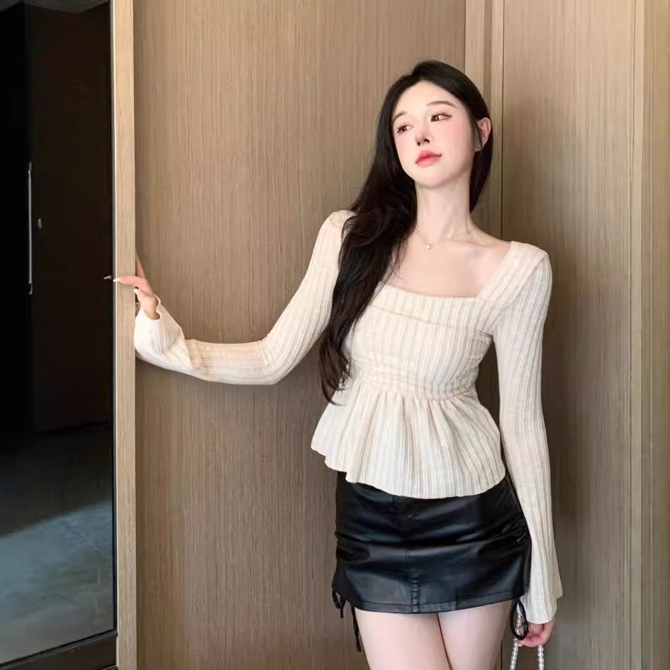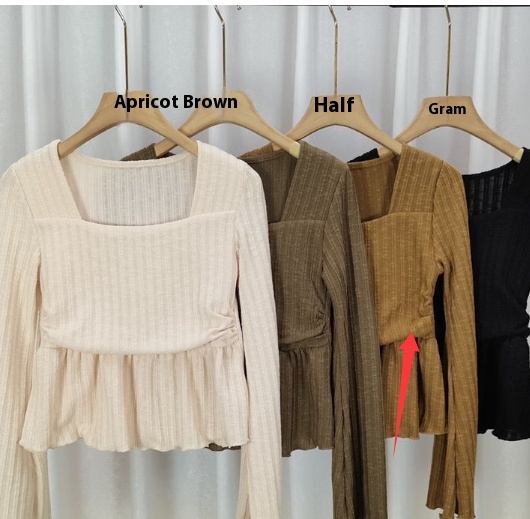 Pure Desire Apricot Hem Square Collar Long Sleeve Top