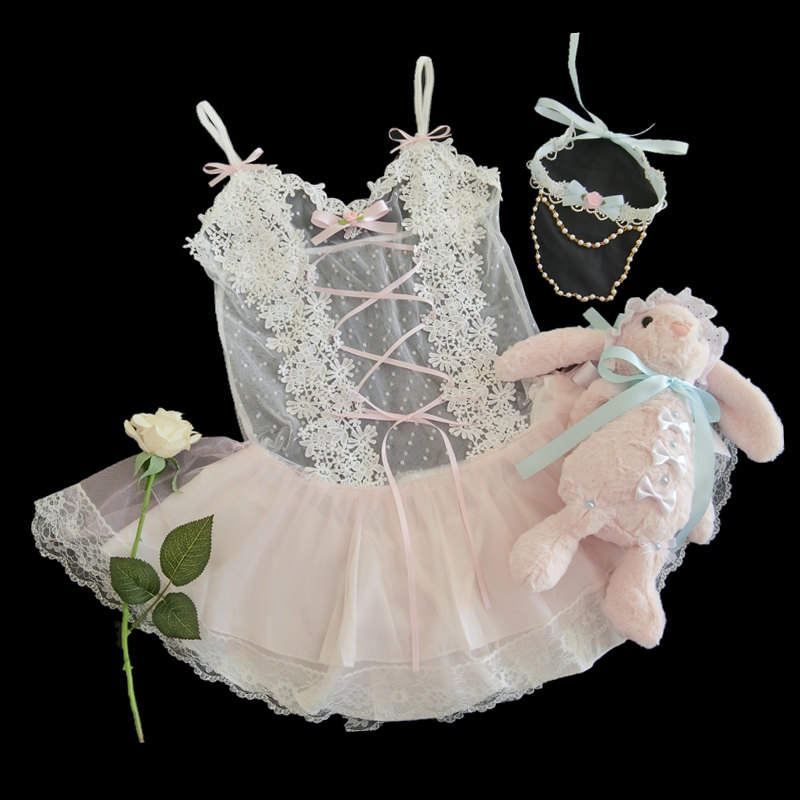 The inner layer is satin, the outer layer is mesh, and the inner link panties