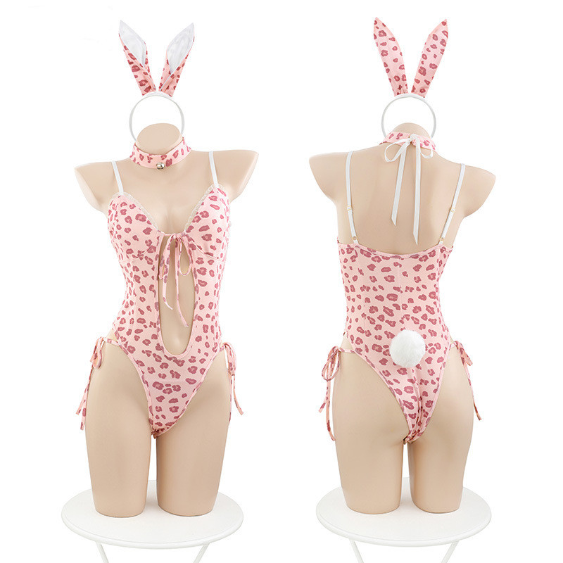 Color: Pink Leopard [hairband + bell neck ring + hidden button open crotch jumpsuit + bracelet * 2]