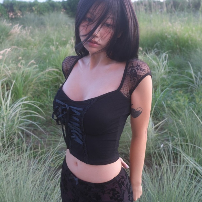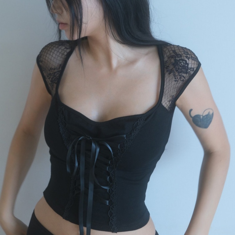 Pure Desire Style Lace Lace Up Short Hot Girl Top T-shirt