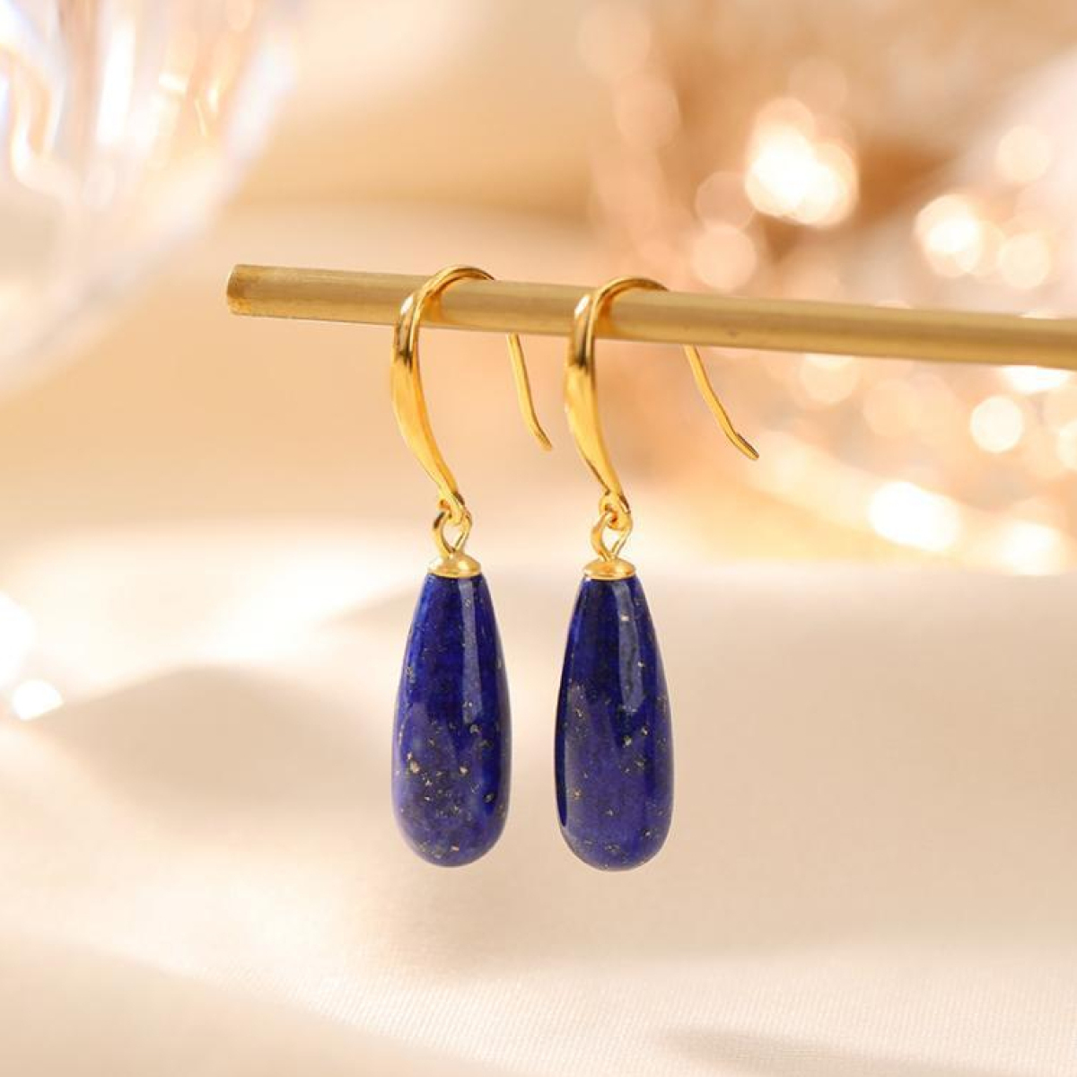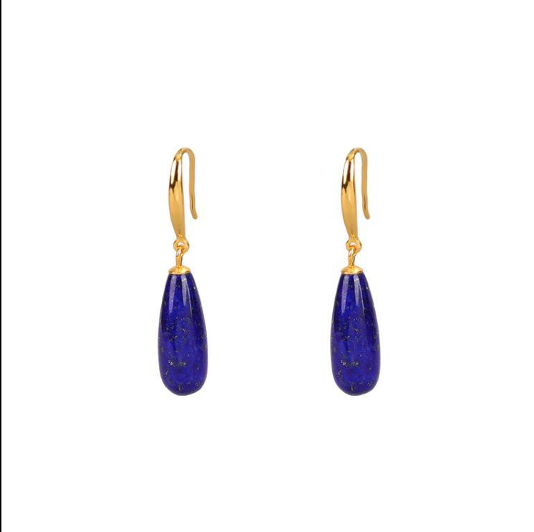 Pure Silver Gold-plated Exquisite Geometric Shape Natural Lapis Lazuli Water Droplet Shaped Earrings