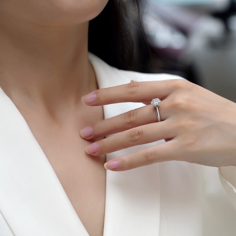 Pure Silver Ring For Women With Six-Petal Moissanite Setting