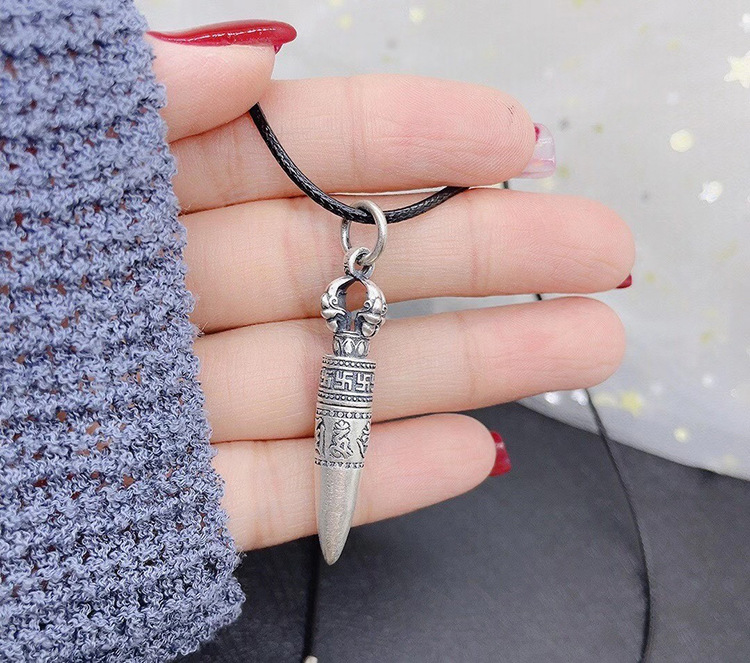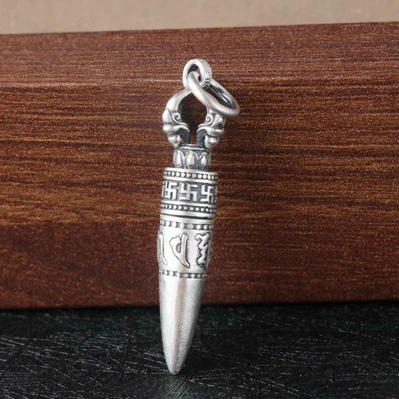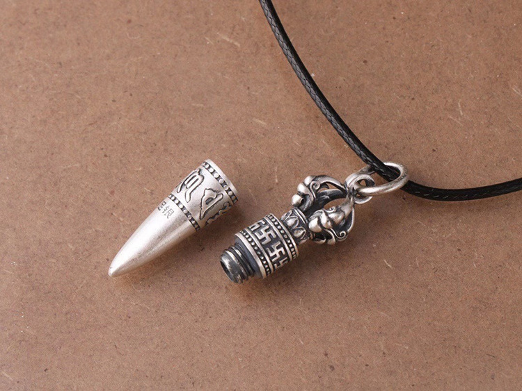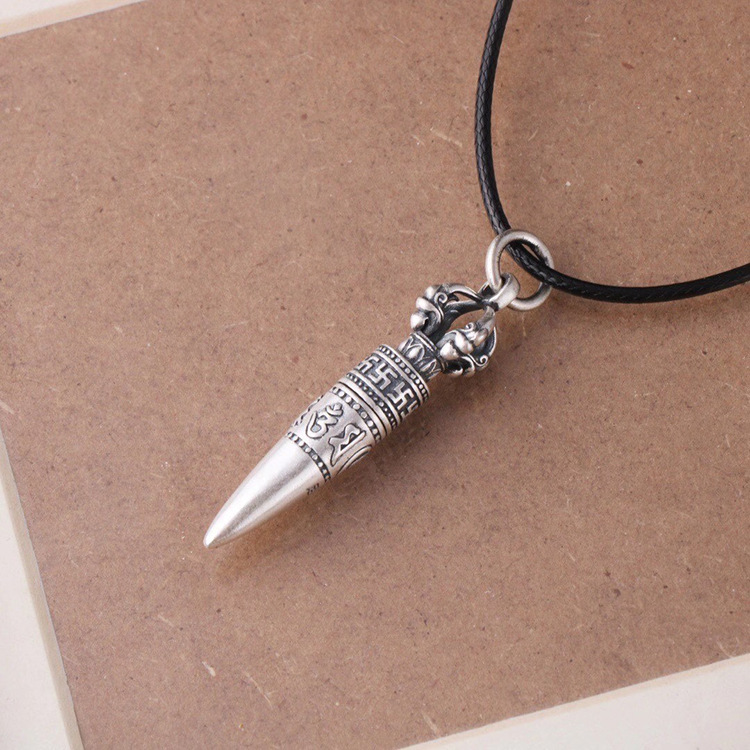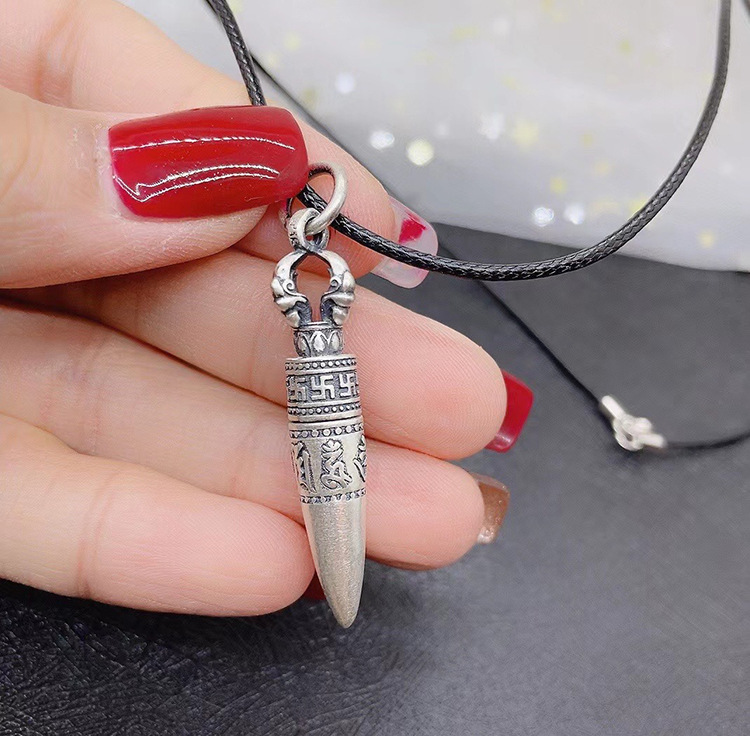 Pure Silver Six Words Mantra Bullet Pendant Clavicle Chain