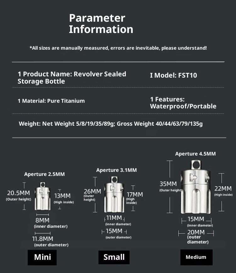 Product information:Usage: Medicine cansMaterial: MetalSpecifications: T10 mini, T10 small, T10 medium, T10 large, T10 extra large