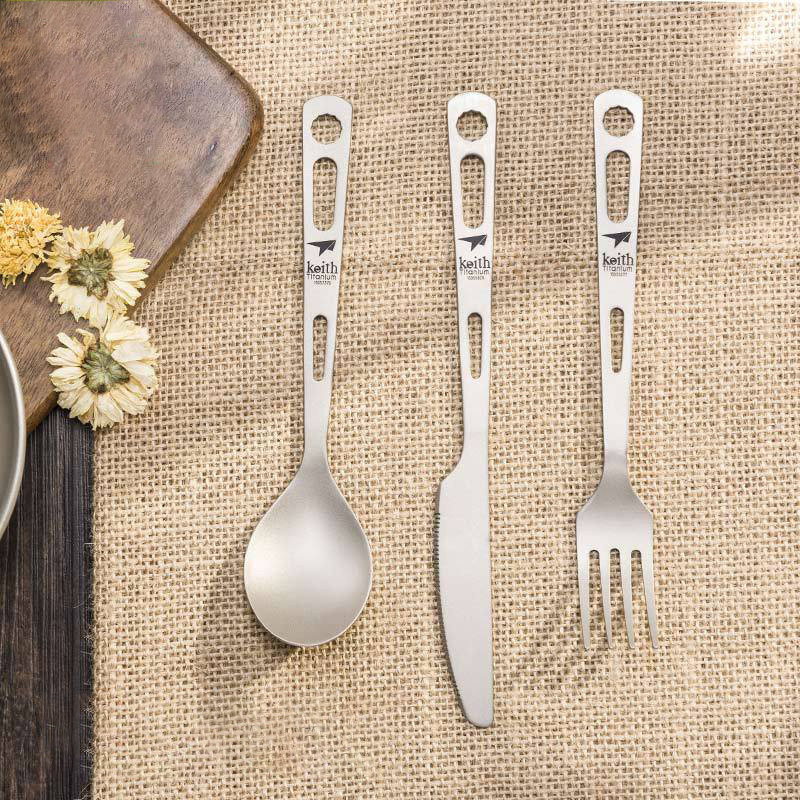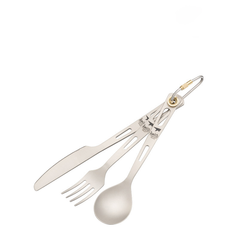 Pure Titanium Knife, Fork And Spoon Three-piece Set, Outdoor Picnic Camping Ultra-light Portable Tableware Set