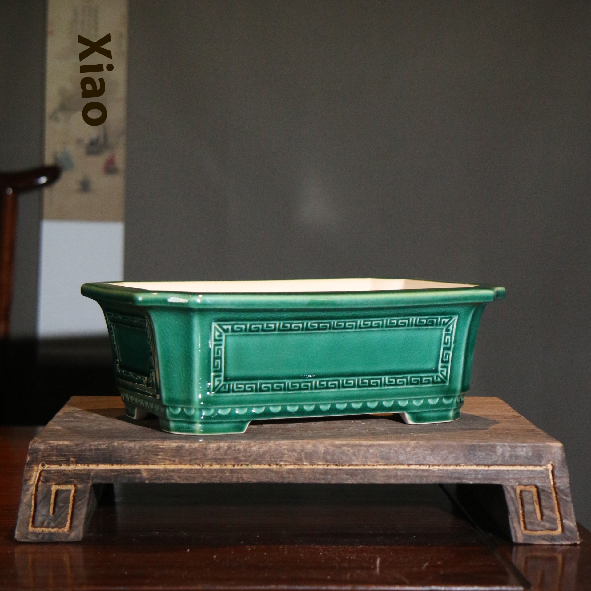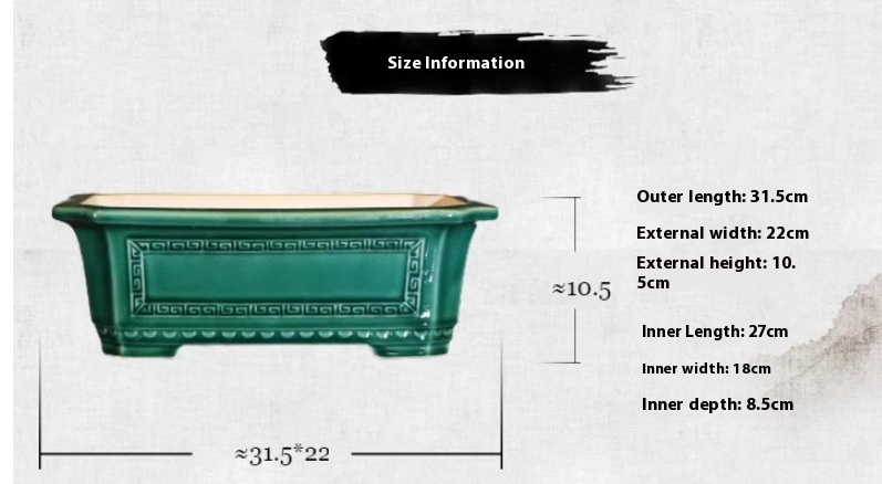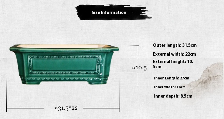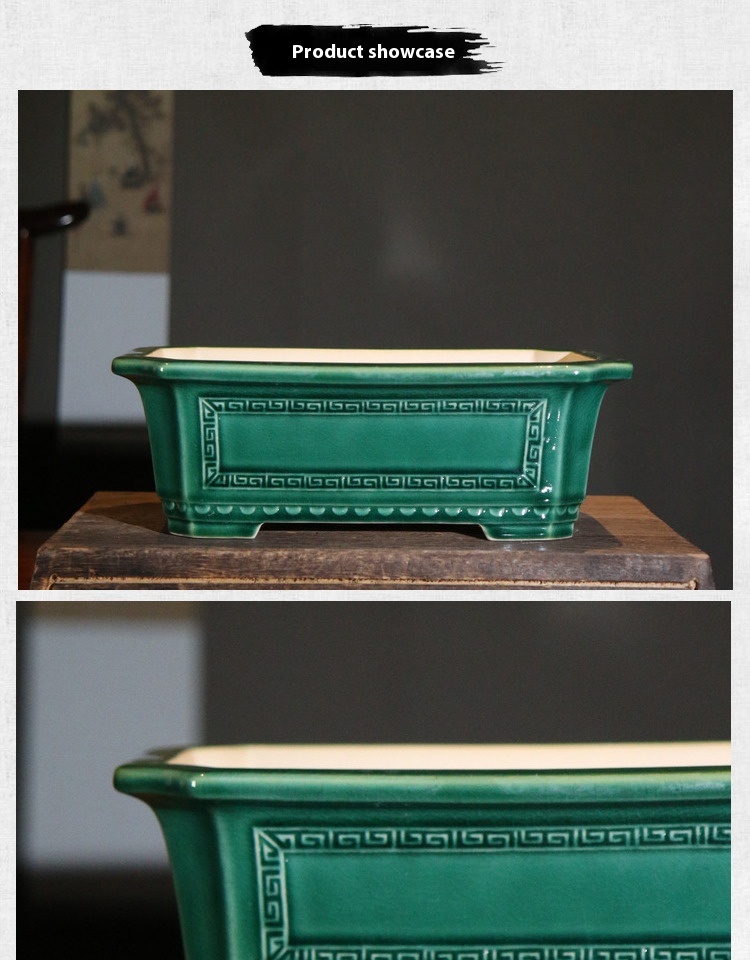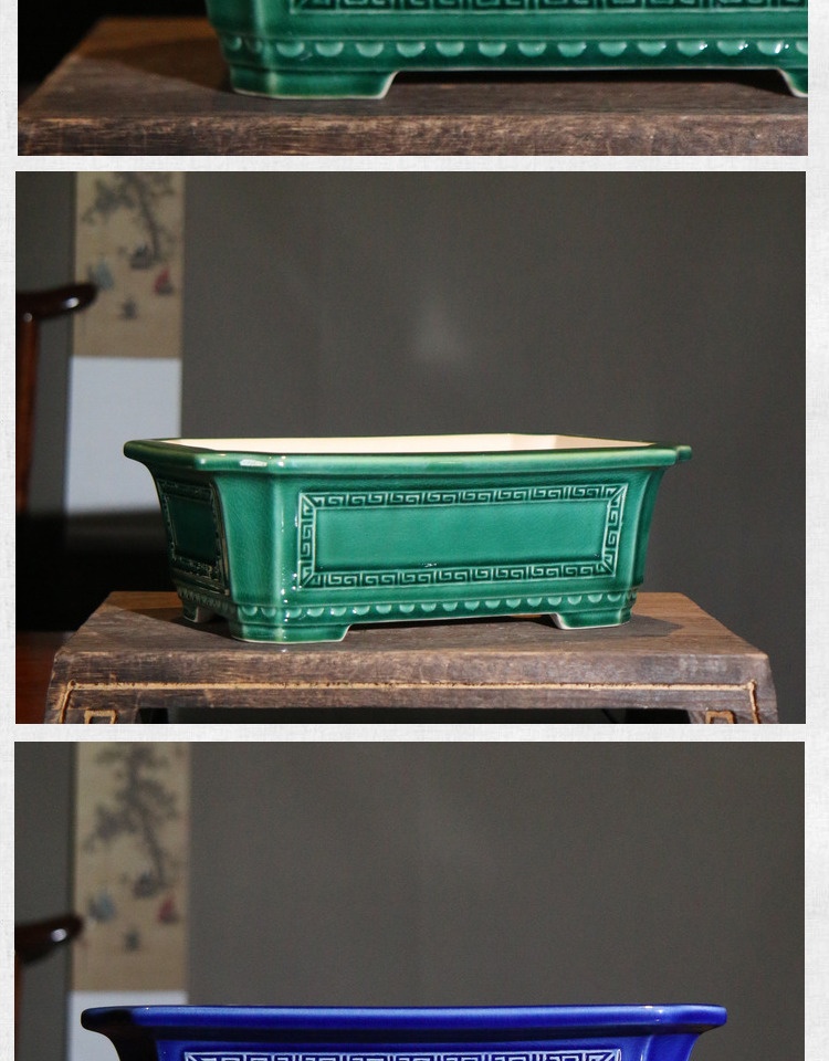 Color: glaze dark green glaze dark blue, light rectangular