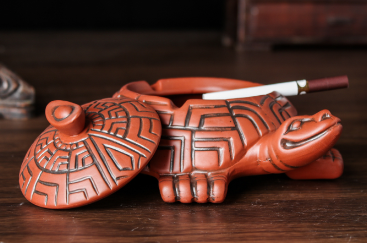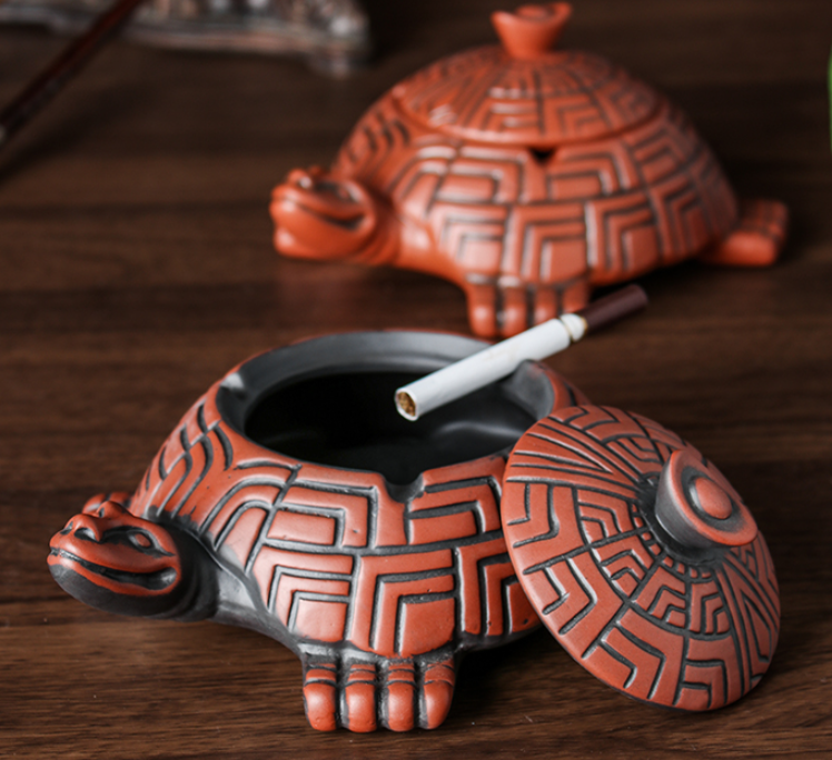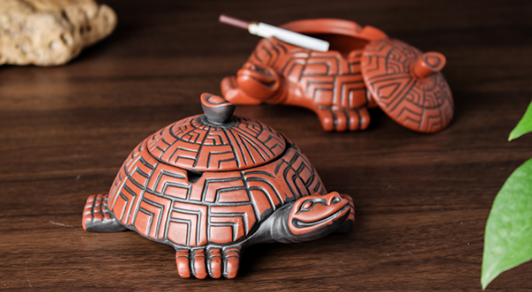 Color: black antique longevity turtle ashtray, red antique longevity turtle ashtray