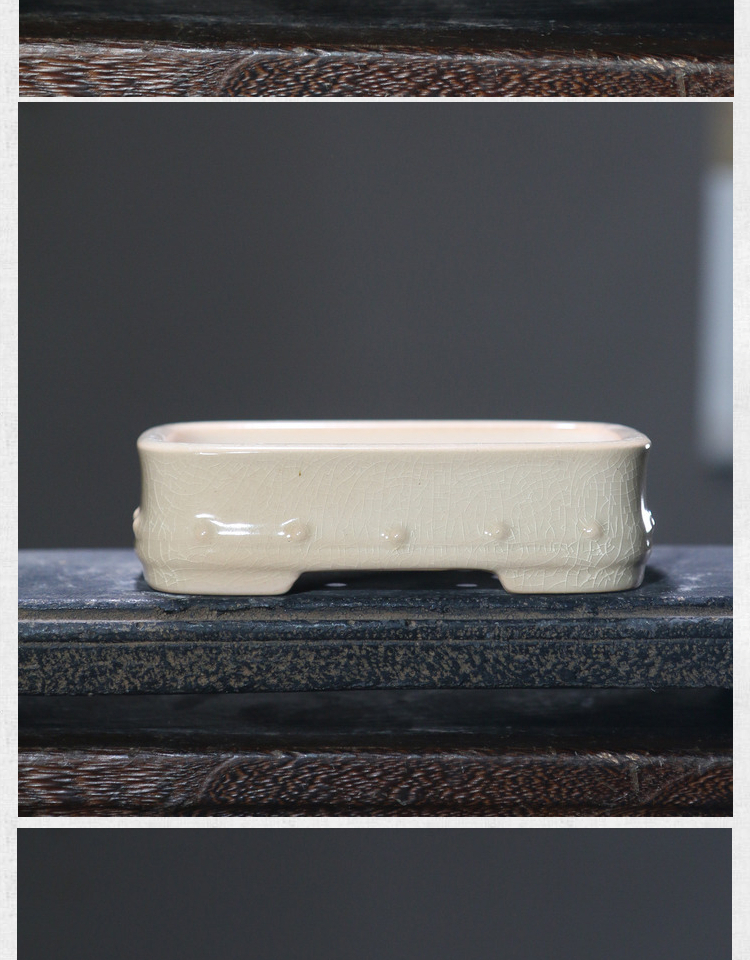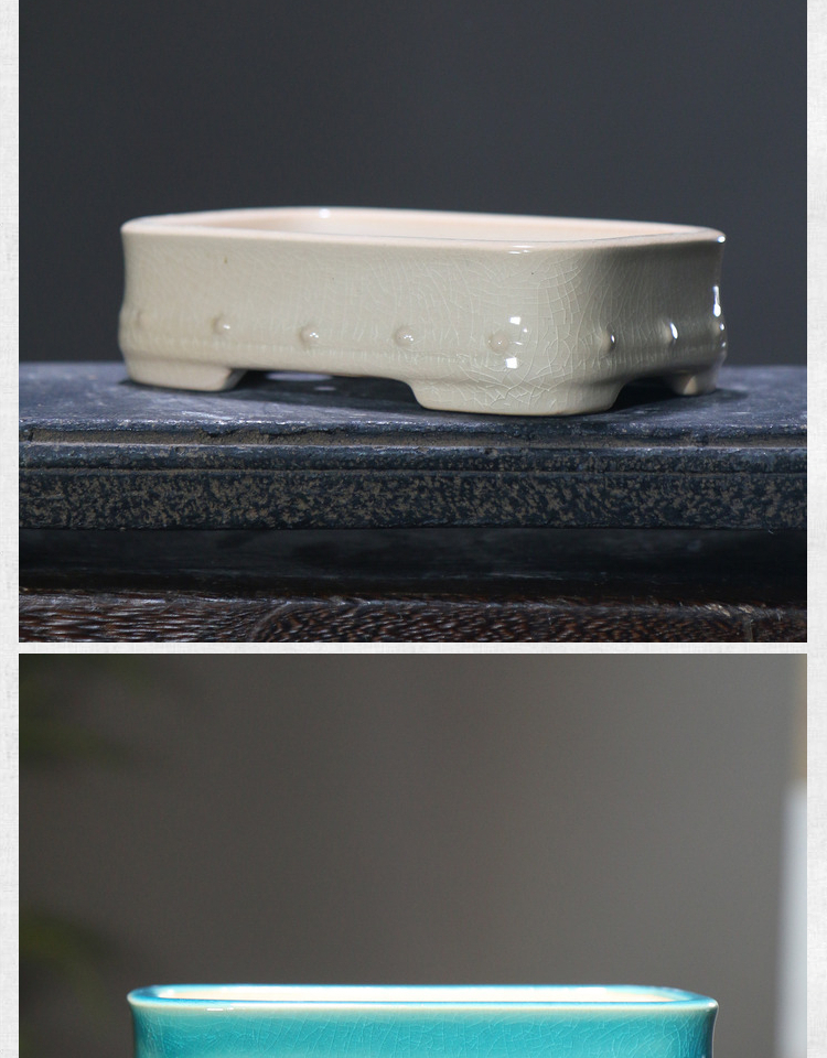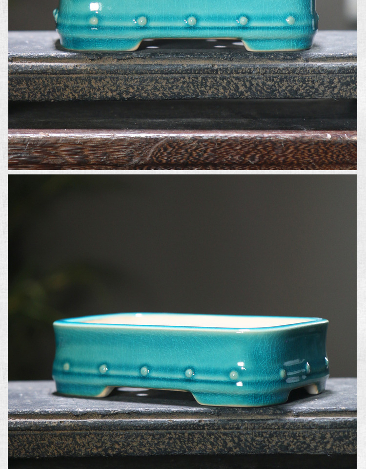Color: green gracked glaze, light blue, dark blue gracked glaze, white gracked glaze, peacock blue