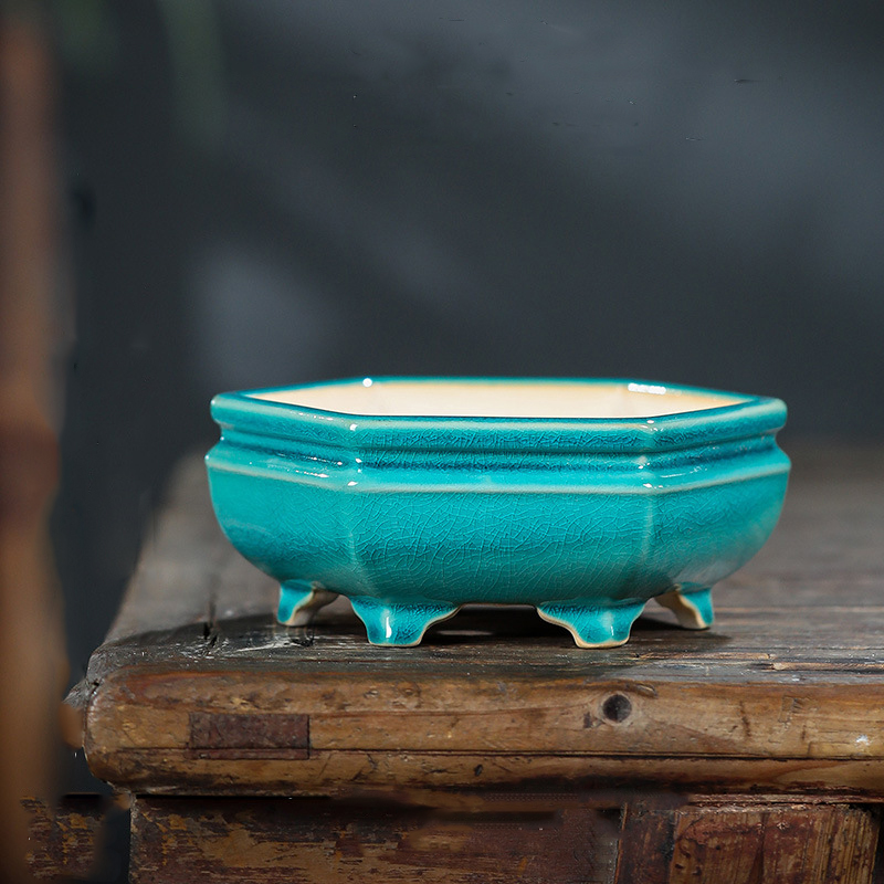 Color: green gracked glaze, dark blue gracked glaze, light blue, peacock blue, white gracked glaze
