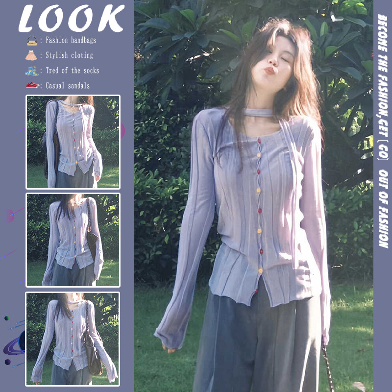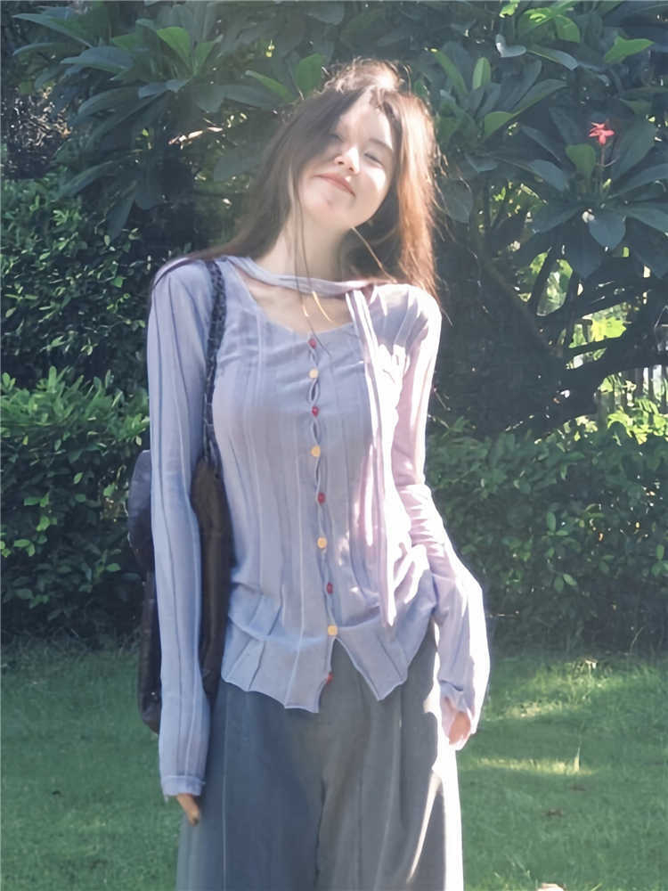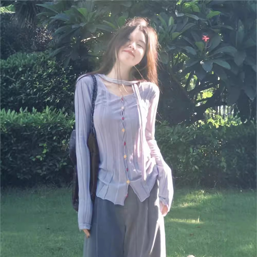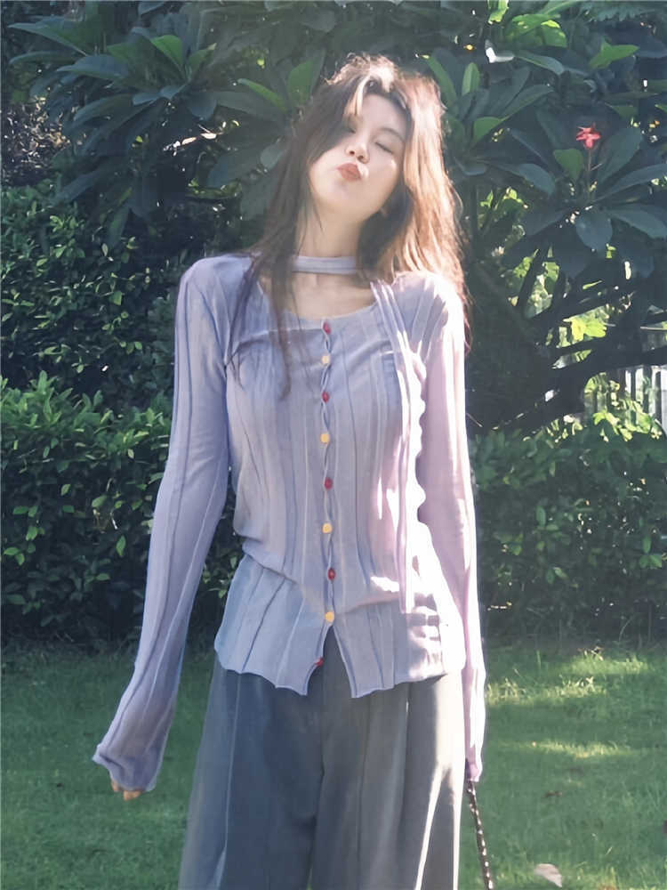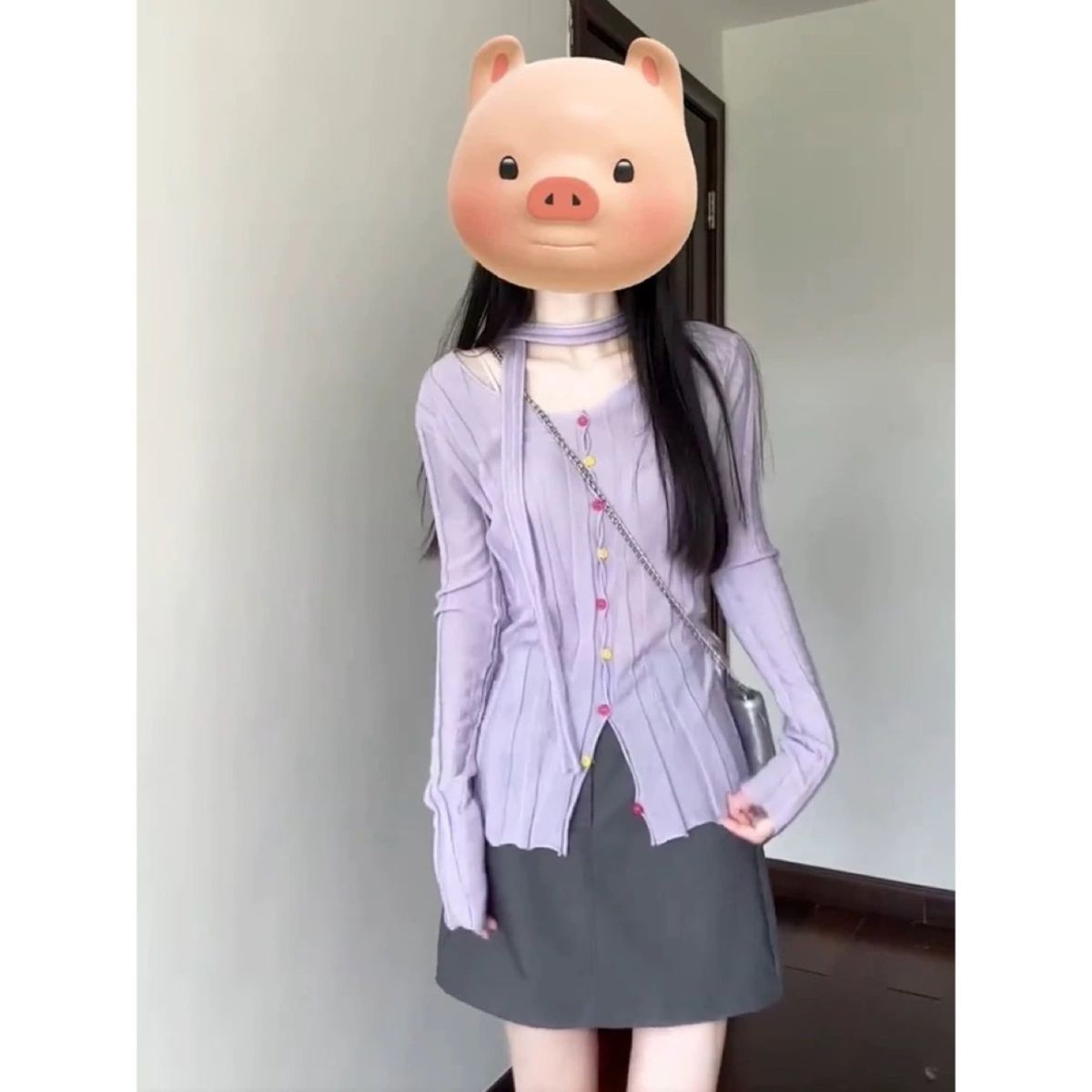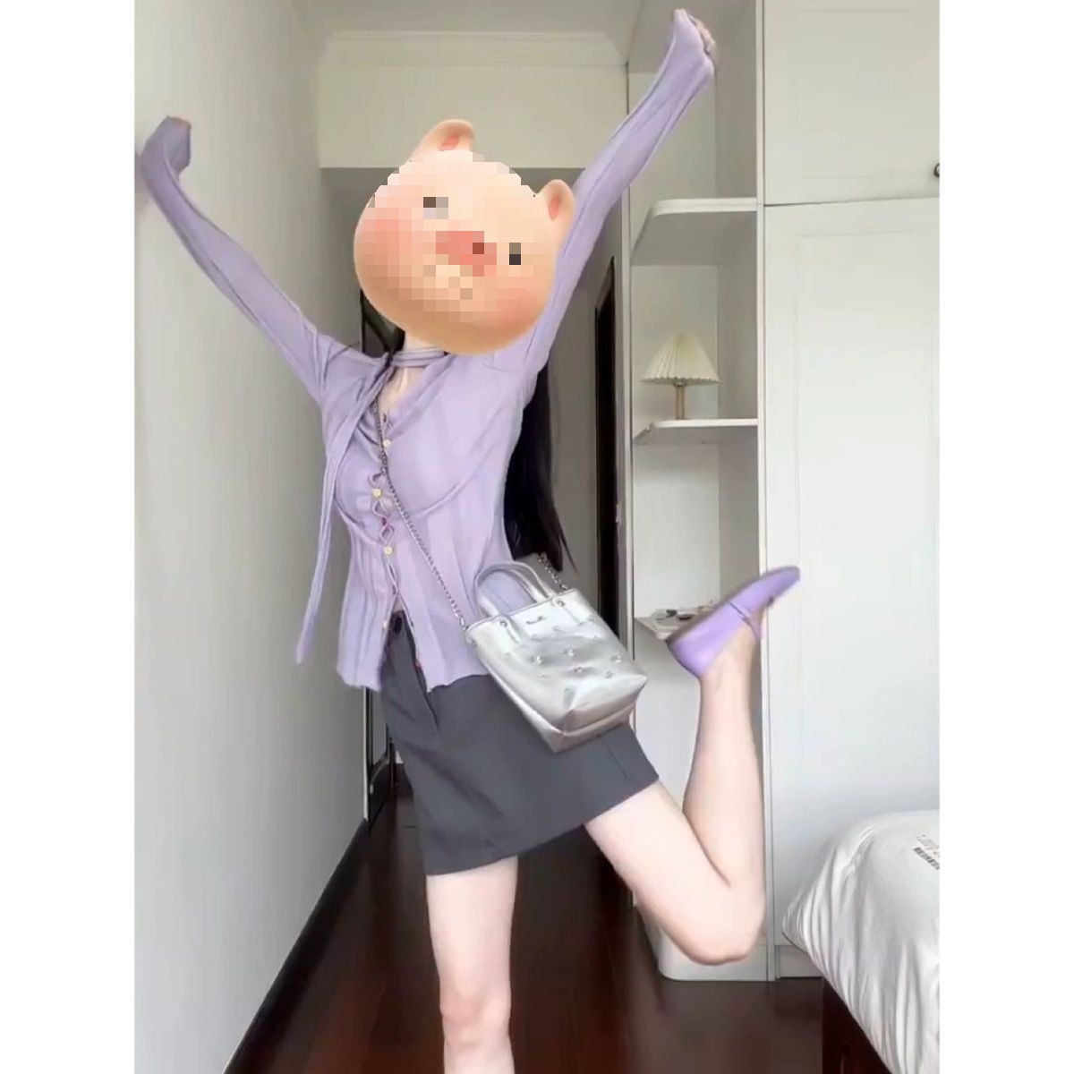 Purple Slim-fit Slimming Sweater Long-sleeved T-shirt