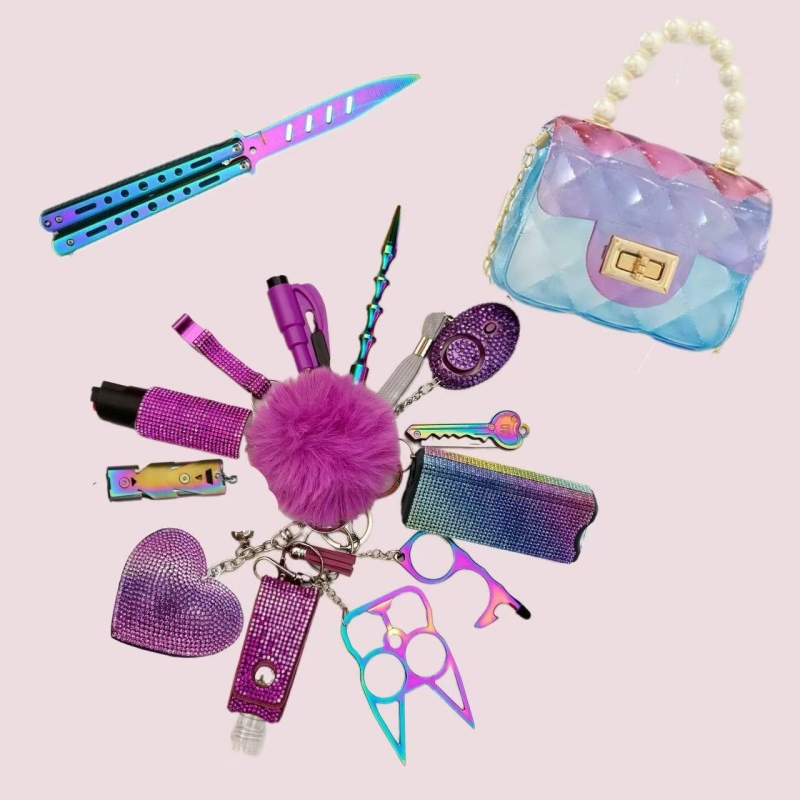 Purple Sparkling Series Defense Keychain Set