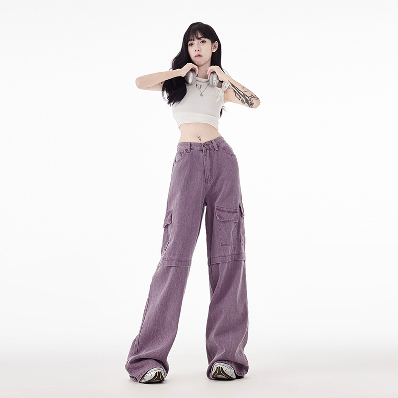 Color: purple sweet potato color trousers, purple sweet potato color lengthened