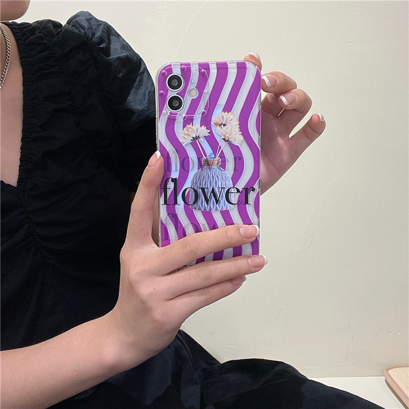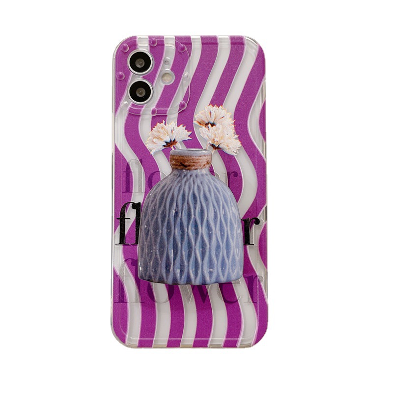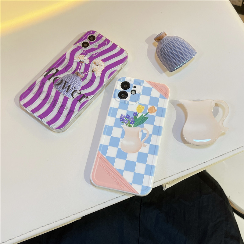 Color: purple striped flower+vase holder, pink blue checkerboard+white vase holder