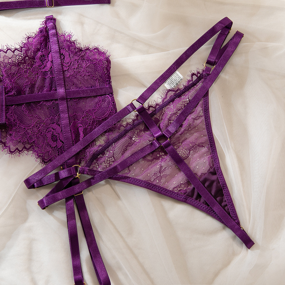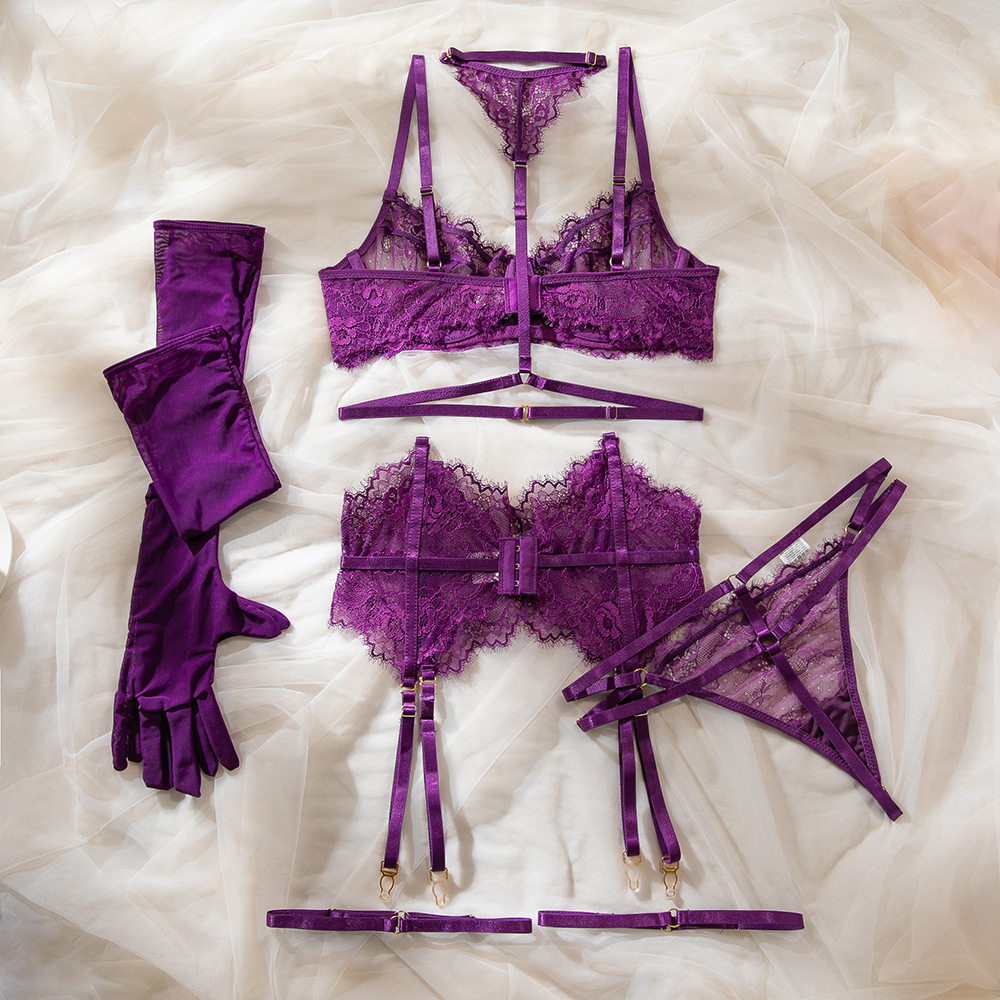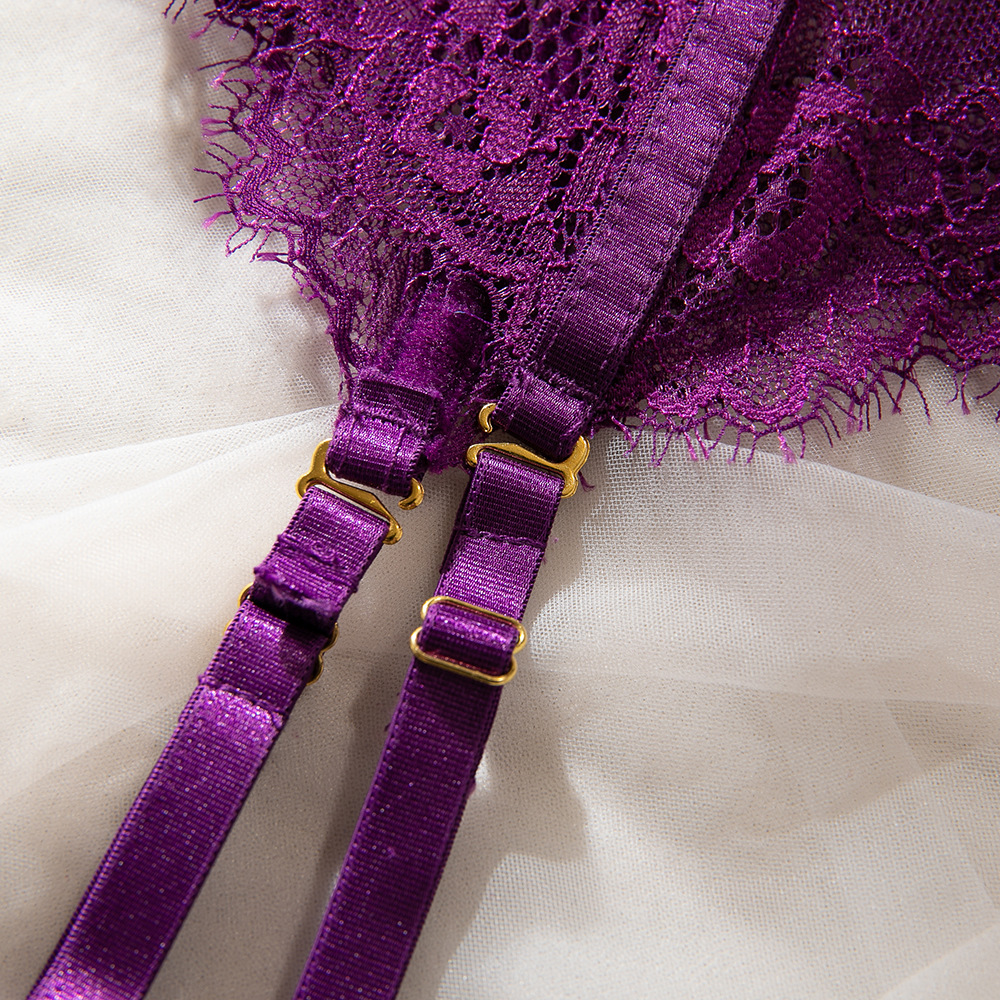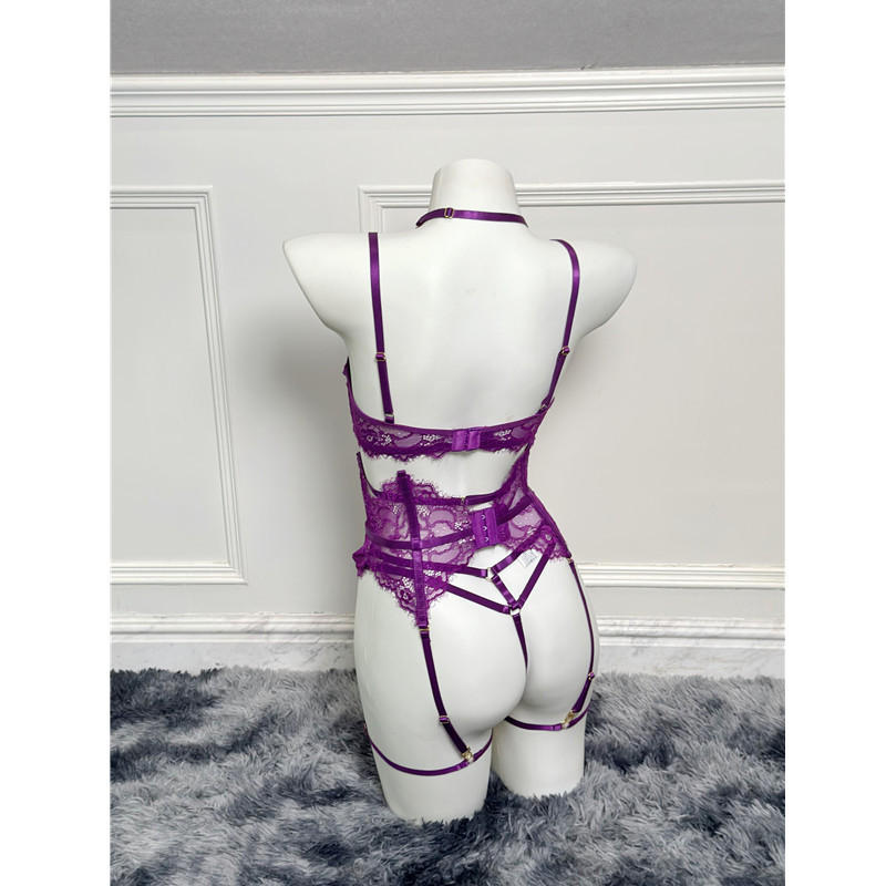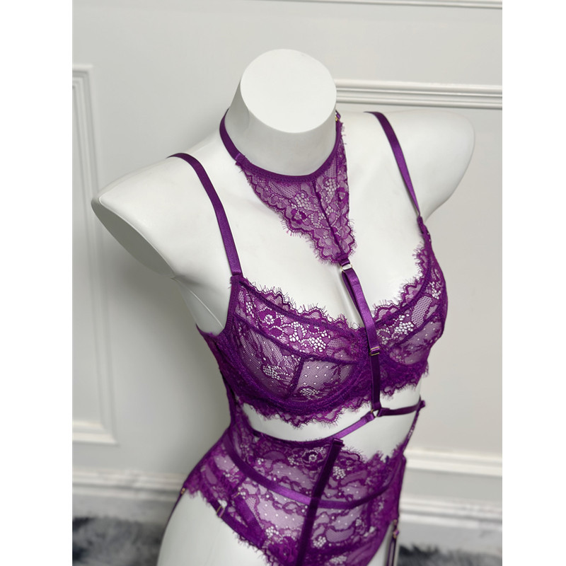 Purple Women's Underwear Halter Lace Push Up Bra Set