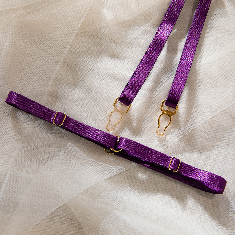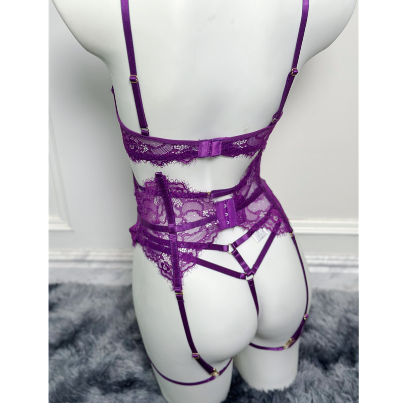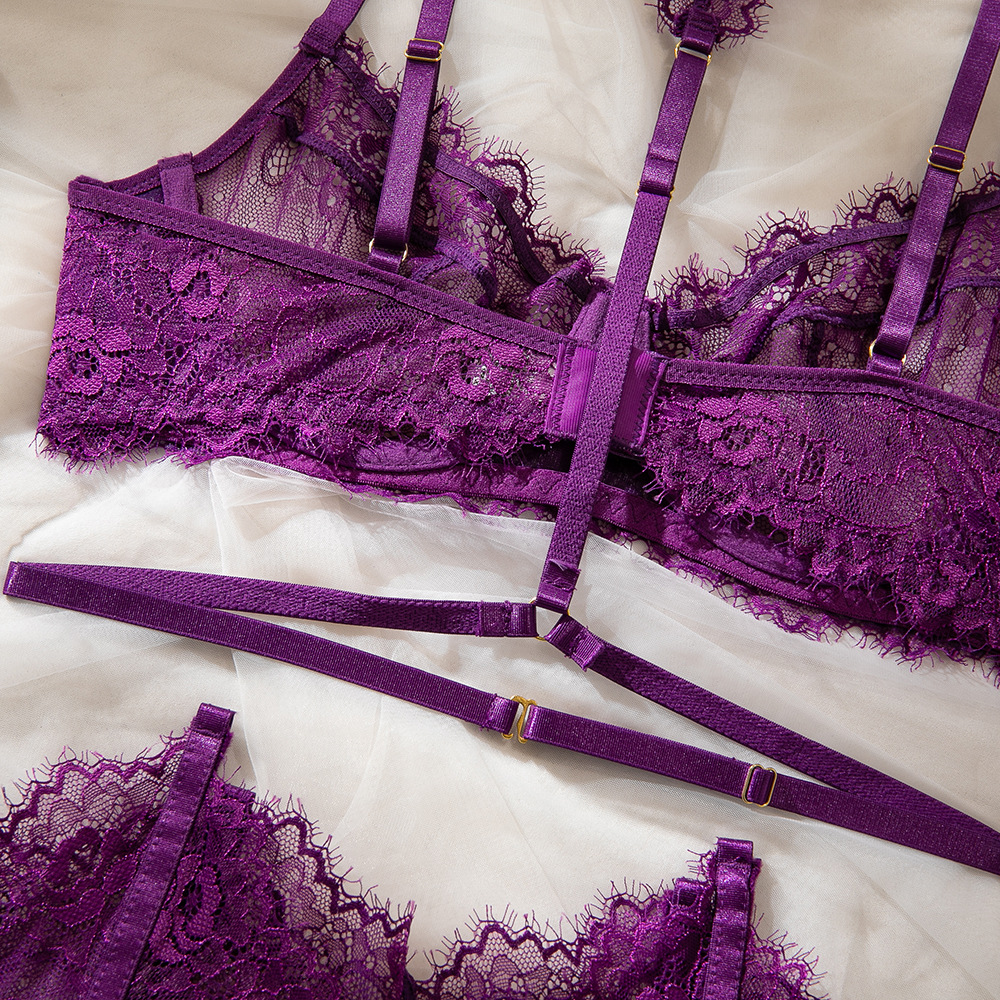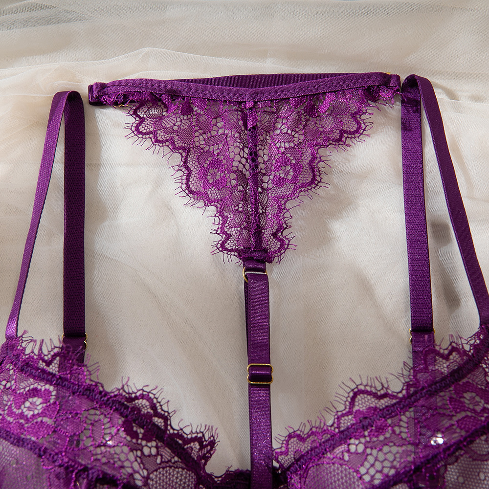 Purple Women's Underwear Halter Lace Push Up Bra Set