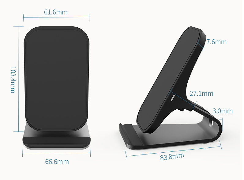 Indicator light: red light on: indicates that the wireless charging is connected to the power supply, blue light on: indicates that the wireless charging is working