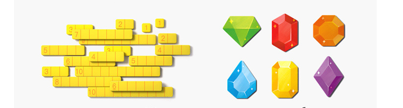 Treasure chest drawing x1, gemstone x6, instruction manual x1