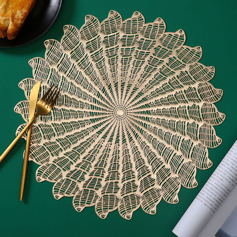 PVC bronzing and silver placemats are one of the best-selling placemats independently designed and produced by Lishanghua.