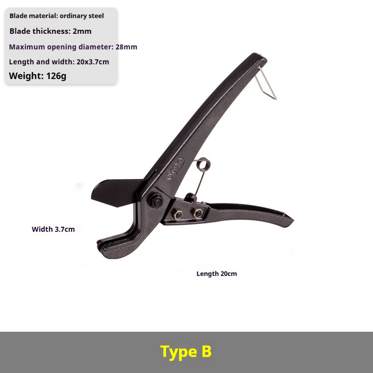 Model: Pu steel (16-32 tube) type A, Pu steel (16-32 tube) type B, Pu steel (16-32 tube) type C, imported manganese steel (16-40 tube) type D, alloy steel (16-40 tube) E Type, alloy steel (16-50 tube) F type, alloy steel (16-63 tube) G type, alloy steel (16-63 tube) big scissors H type, imported manganese steel (16-75 tube) big scissors I type