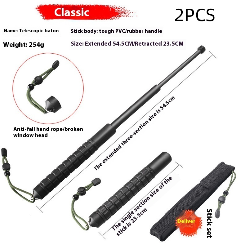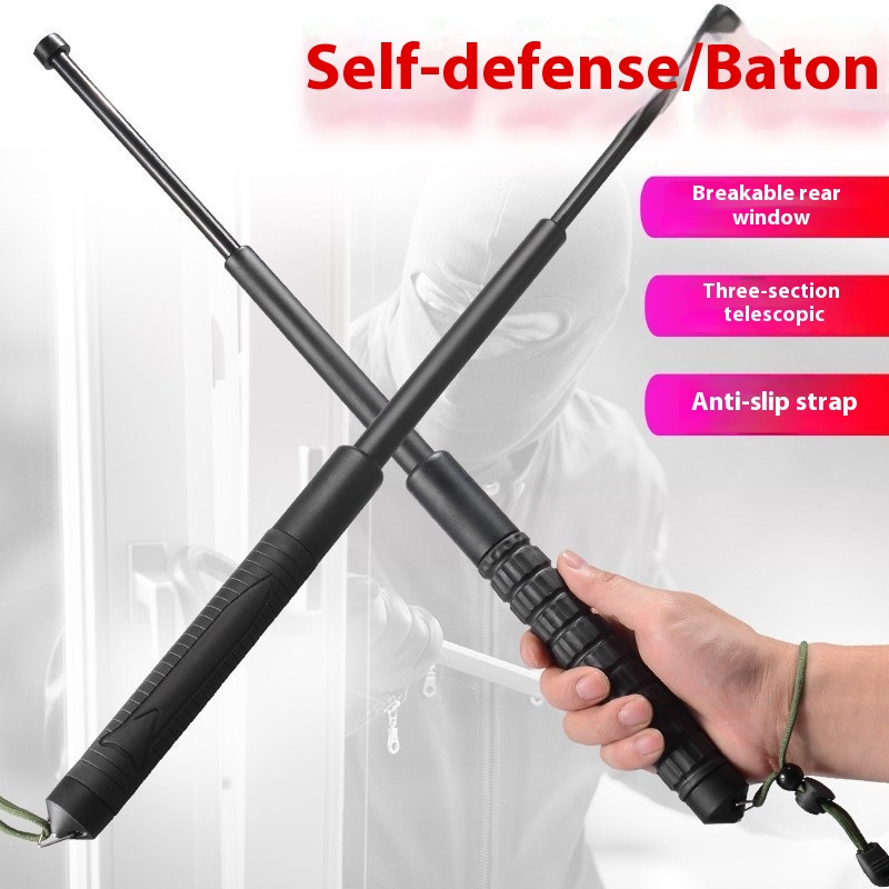 PVC Plastic Self-defense Three-section Car Broken Window Stretchable Baton