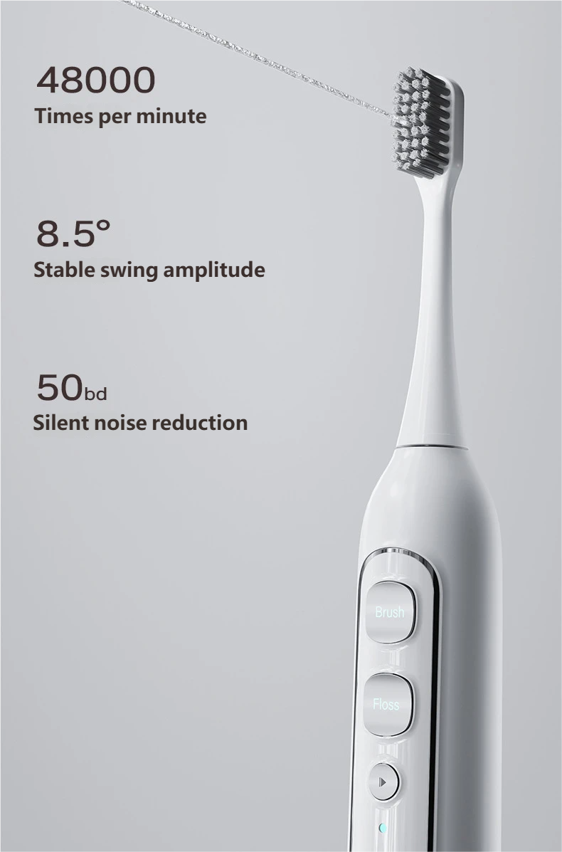 Magnetic Levitation Sonic Technology for Efficient Cleaning: Adopts a magnetic levitation motor with a vibration frequency of up to 48,000 times per minute and a stable swing amplitude of 8.5°, combined with a 0.8mm water-spraying brush head to effectively remove plaque and interdental residue. The noise is controlled below 50dB for quiet operation.
