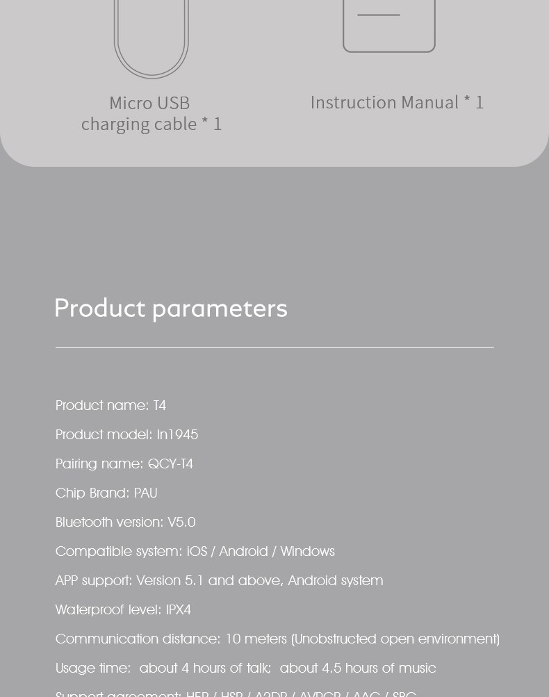 Support protocol: HFP/HSP/A2DP/AVRCP/AAC/SBC