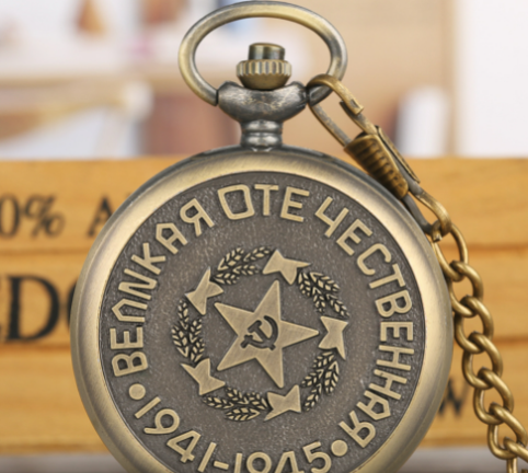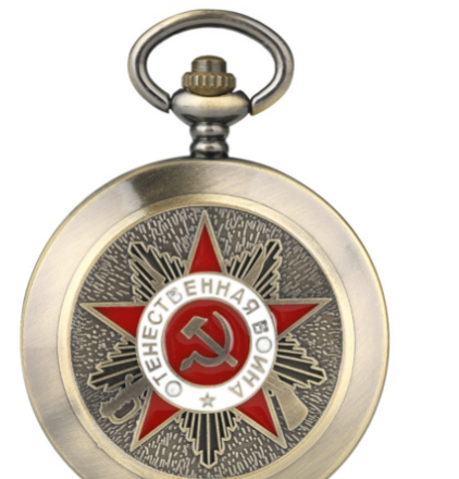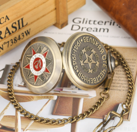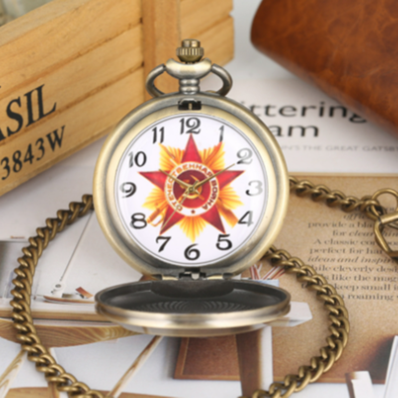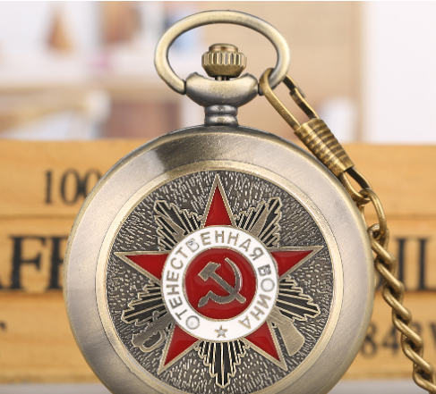 Qinggu Large Embossed Five-pointed Star Pattern Sickle Hammer Flip Retro Pocket Watch