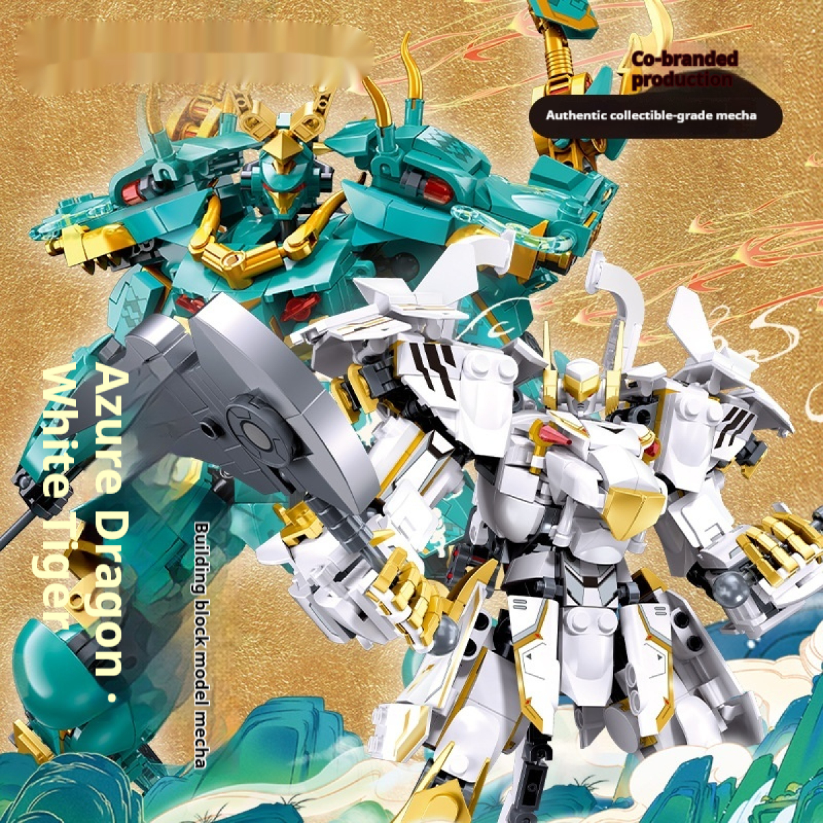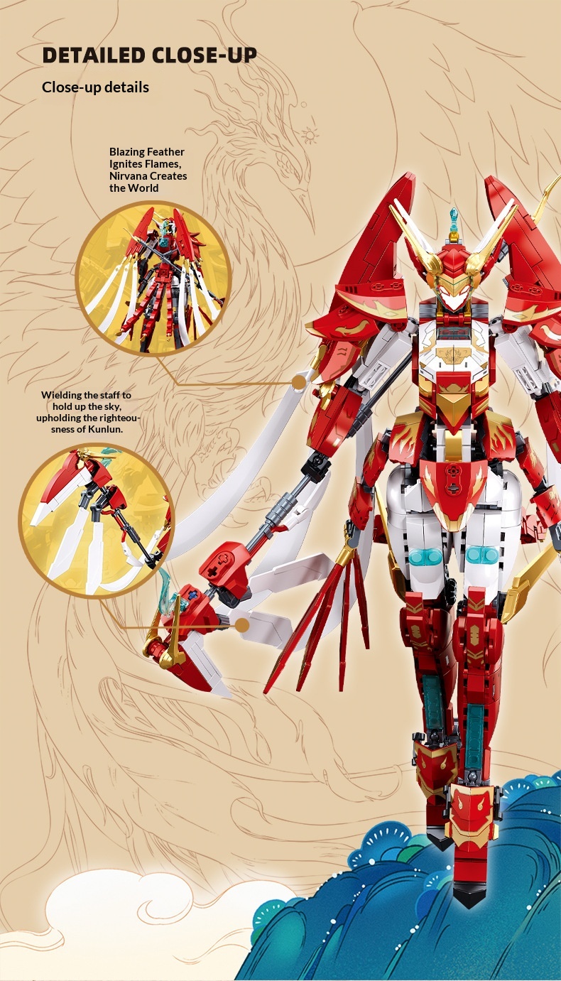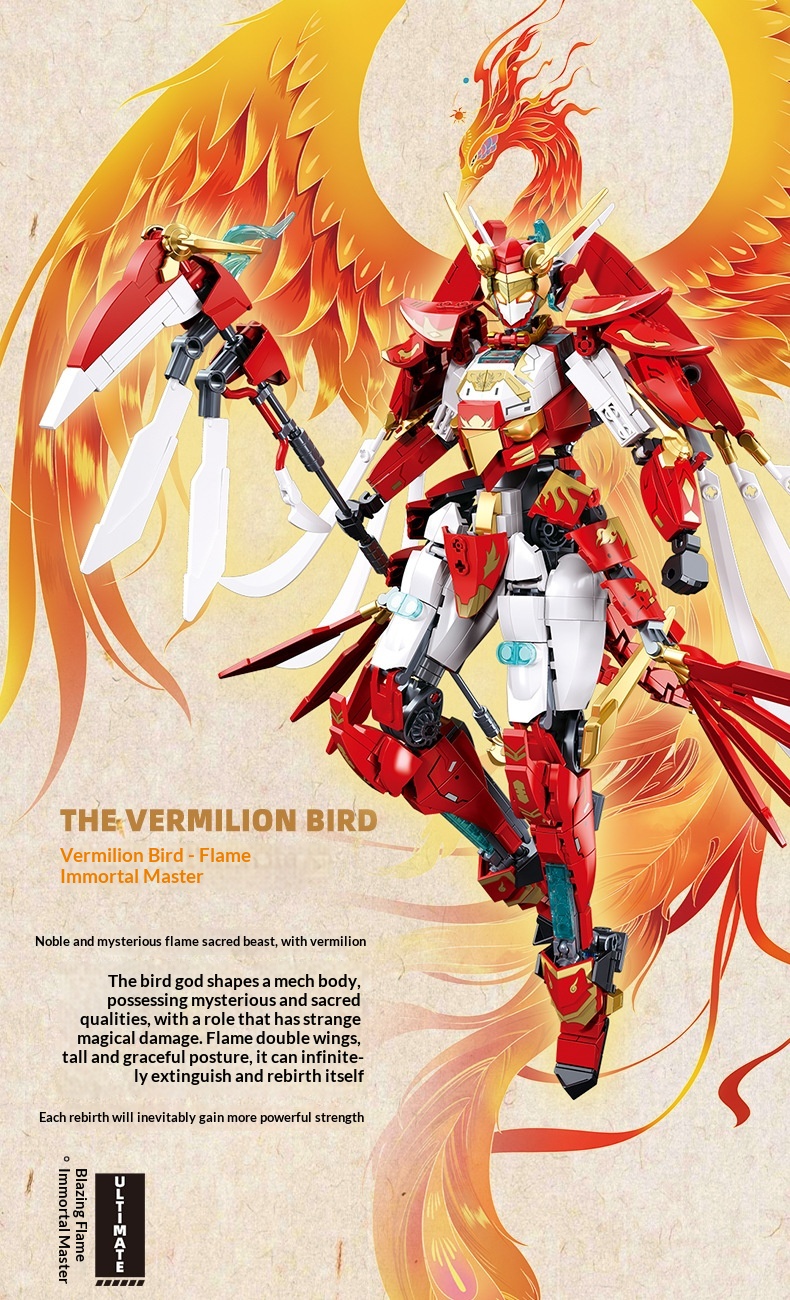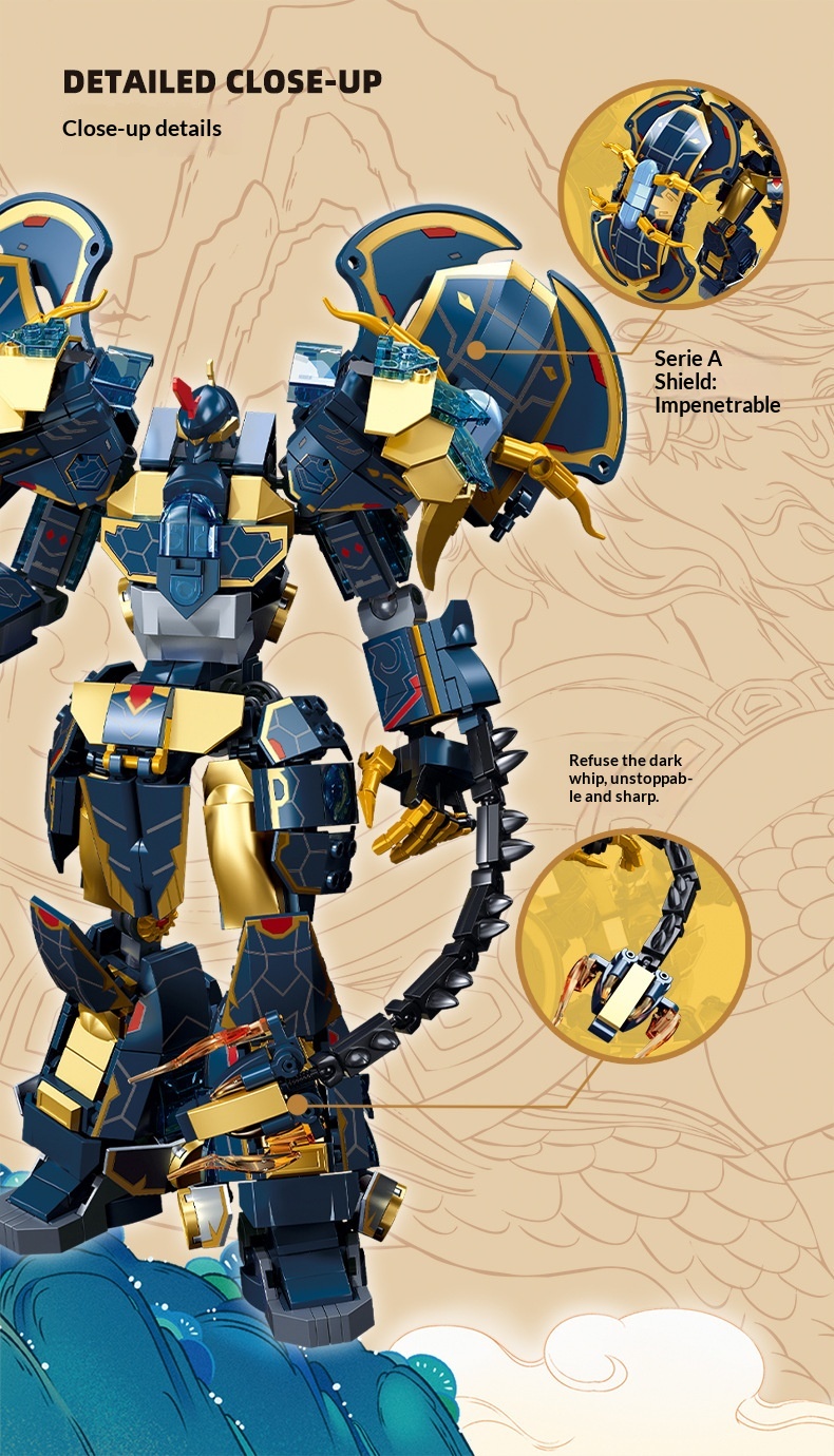 Colors: Xiao Luban 1235 Shan Hai Jing Azure Dragon Mech, Xiao Luban 1236 Shan Hai Jing White Tiger Mech, Xiao Luban 1271 Shan Hai Jing Vermilion Bird Mech, Xiao Luban 1272 Shan Hai Jing Black Tortoise Mech