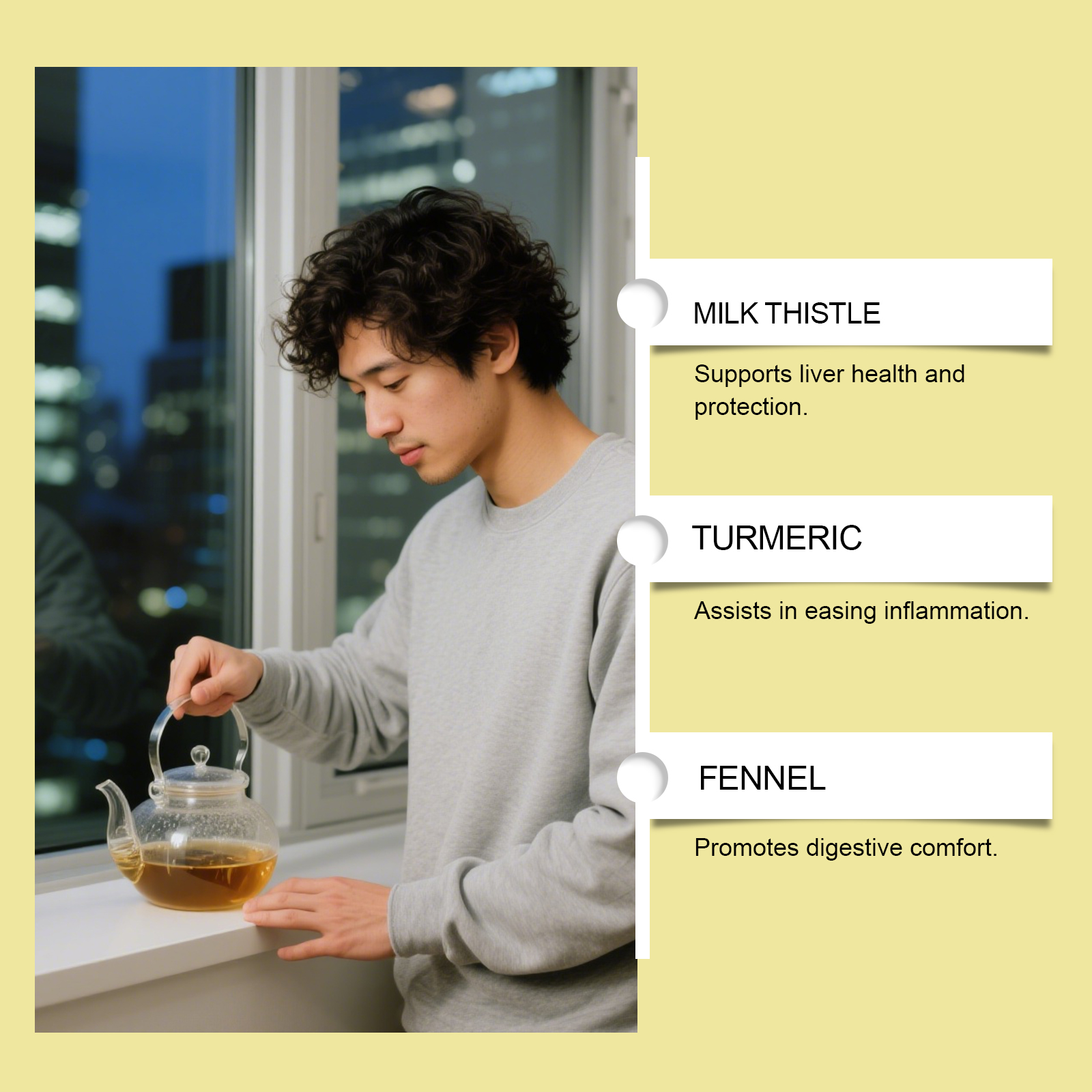 Product information:Ingredients: Silybum marianum, turmeric, fennel.Packing list:Tea bag *15 PIECES