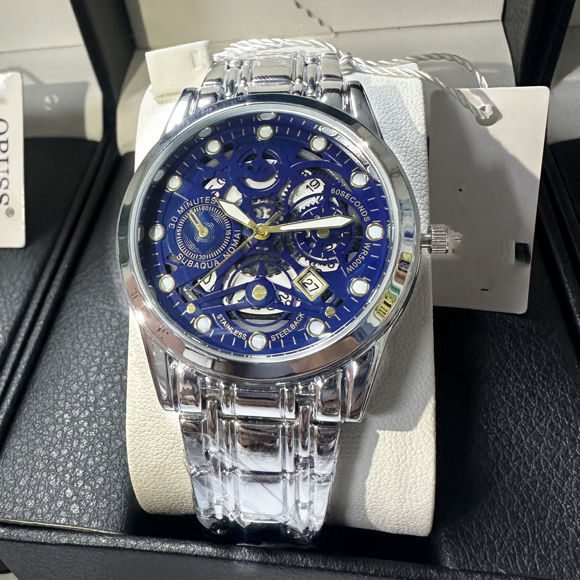 11Style: Hollow out style - Silver strap - Blue faced men's style,
