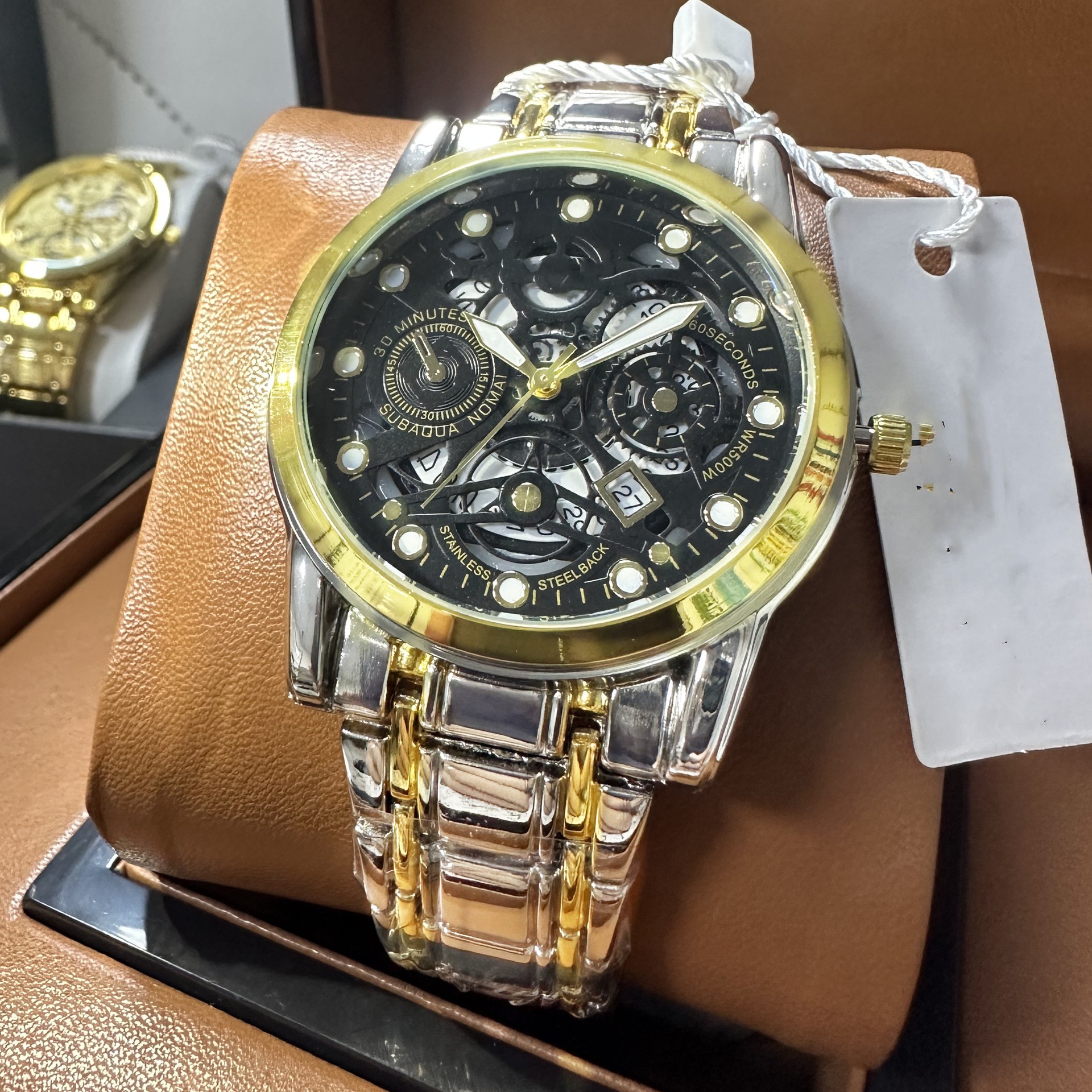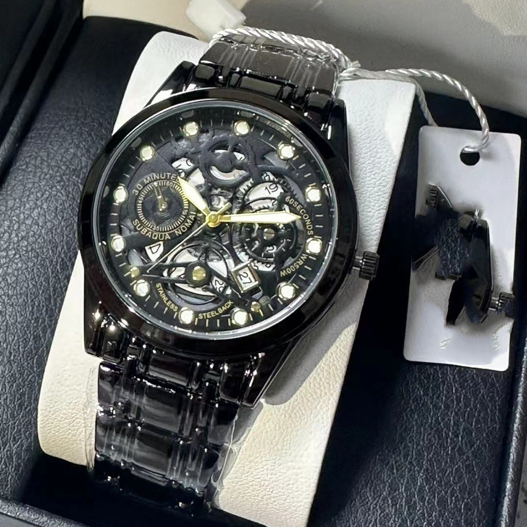 9Style: Hollow out style - Silver strap - Black faced men's style,