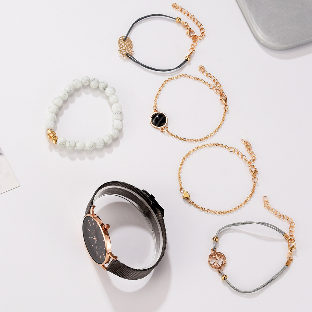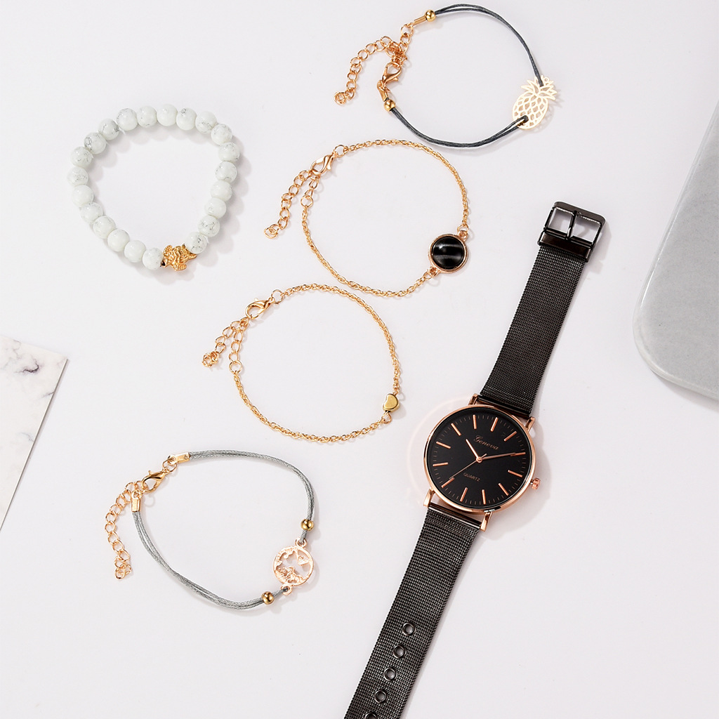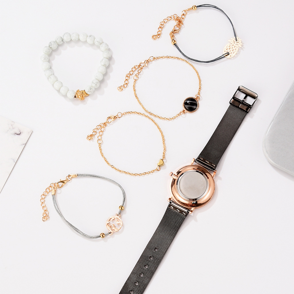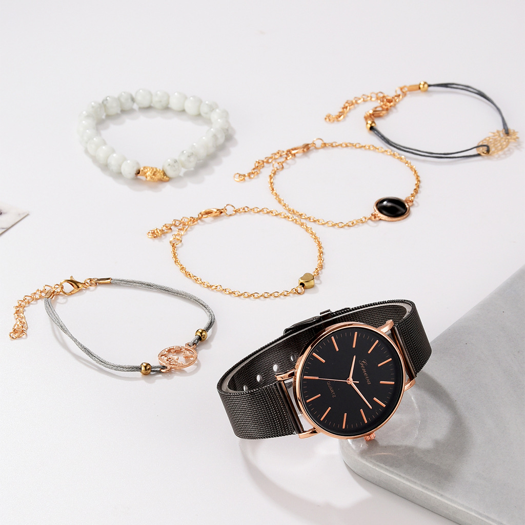 D: Black belt black shell white face rose gold needle