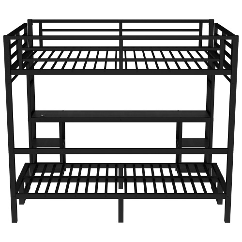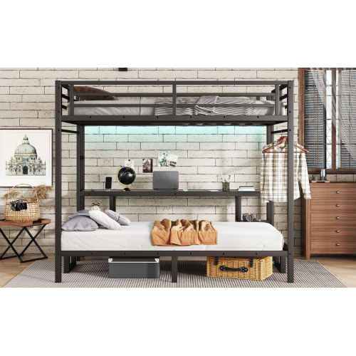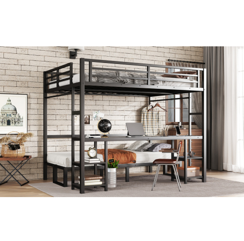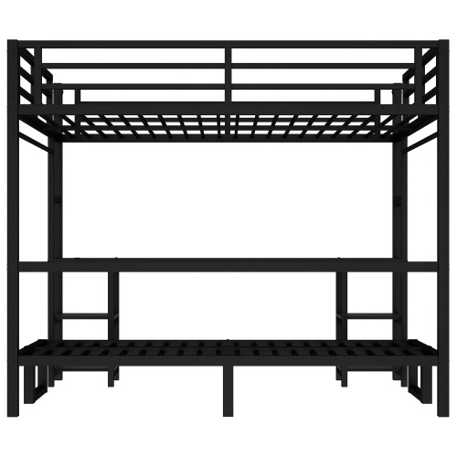Product Name:Queen Over Twin XL Metal Bunk Bed/Loft Bed with Desk and Shelves, Multiple Uses Folds into Sofa with LED and USB, Black