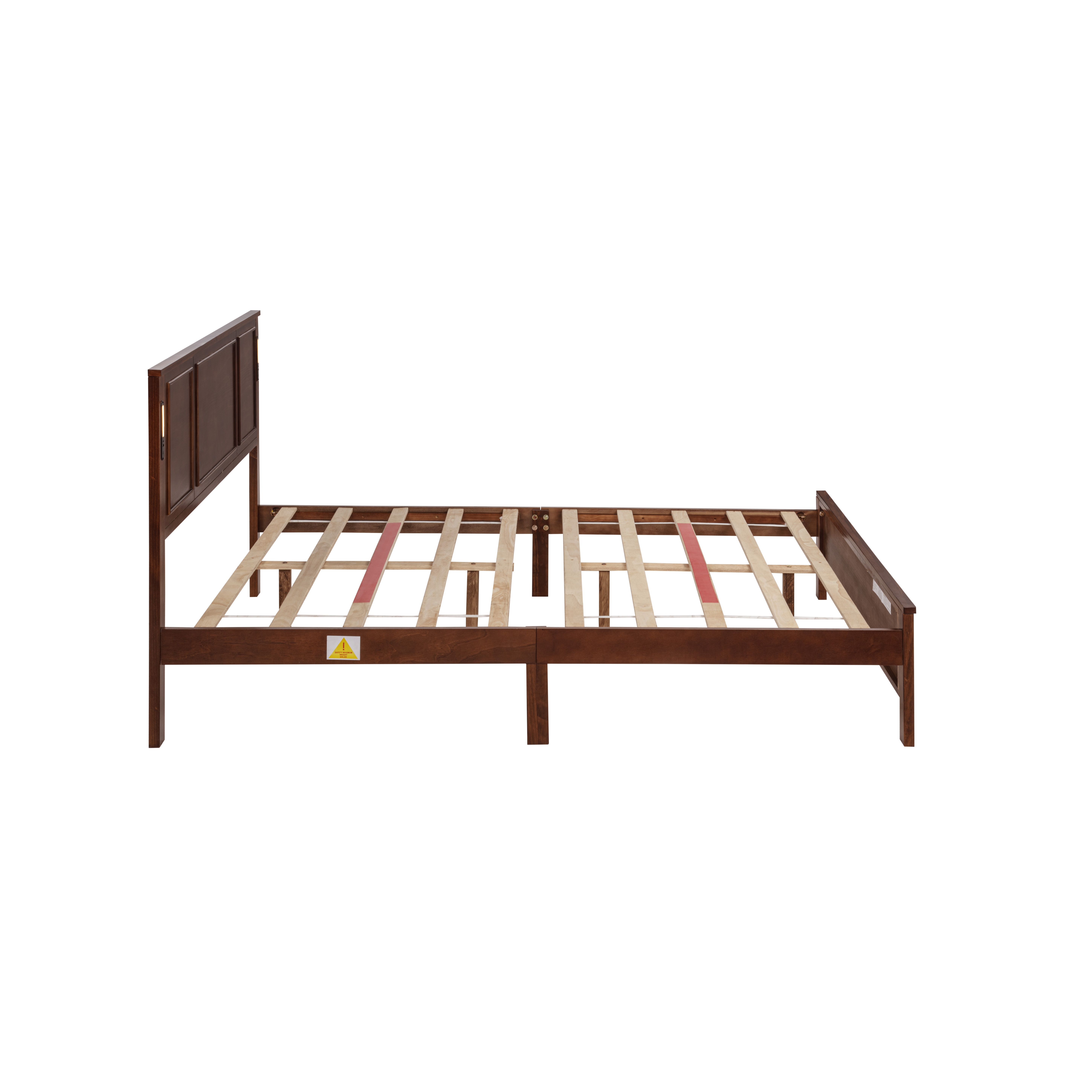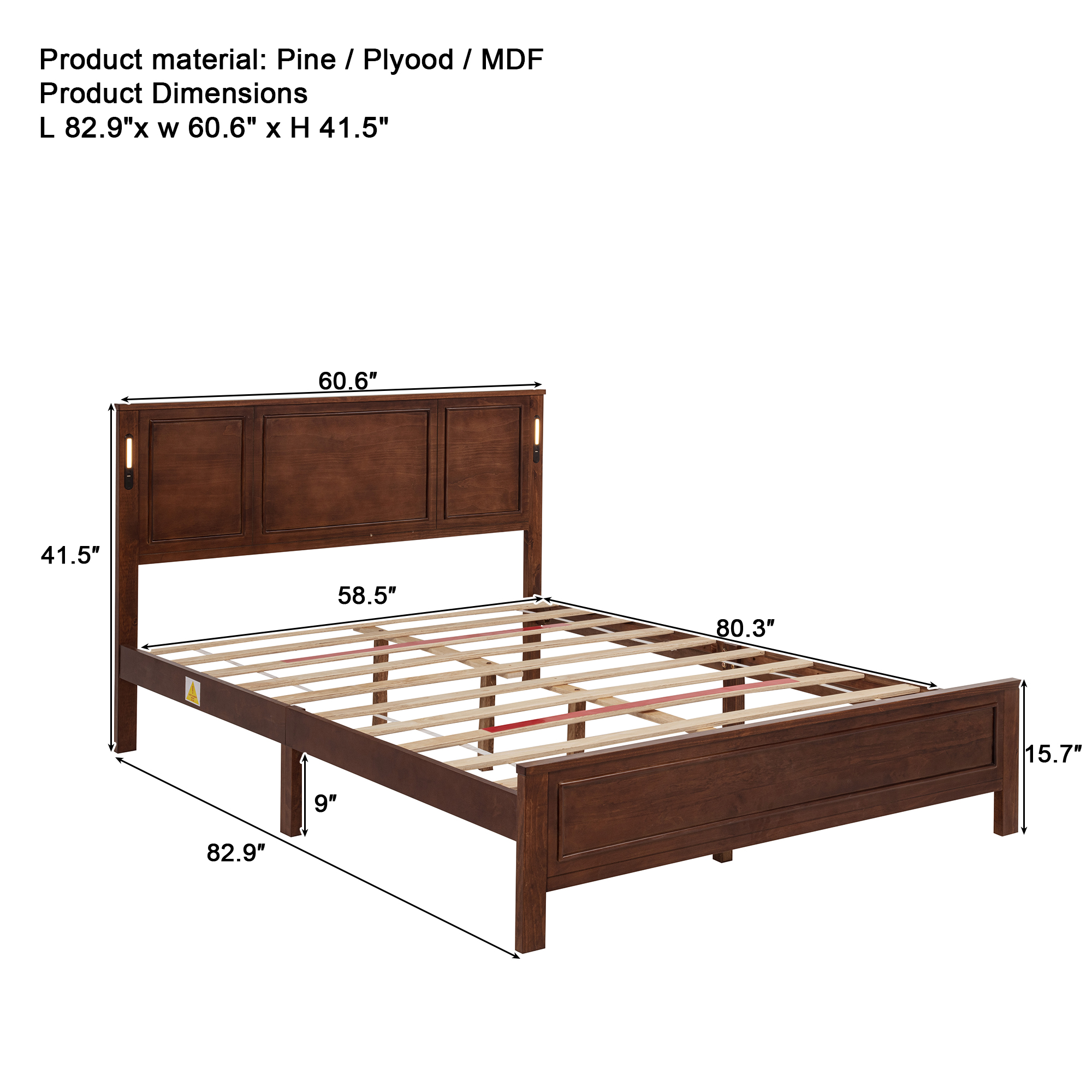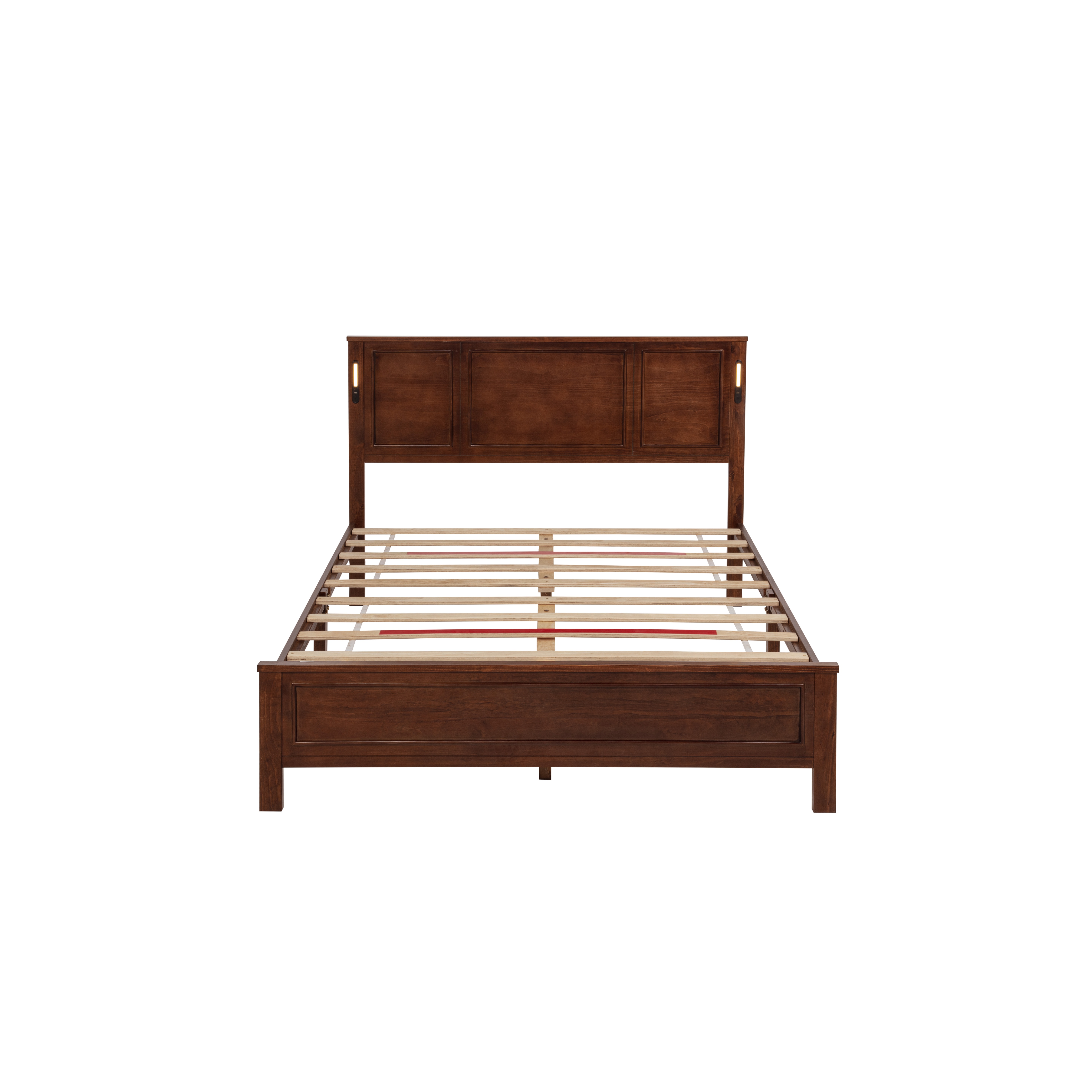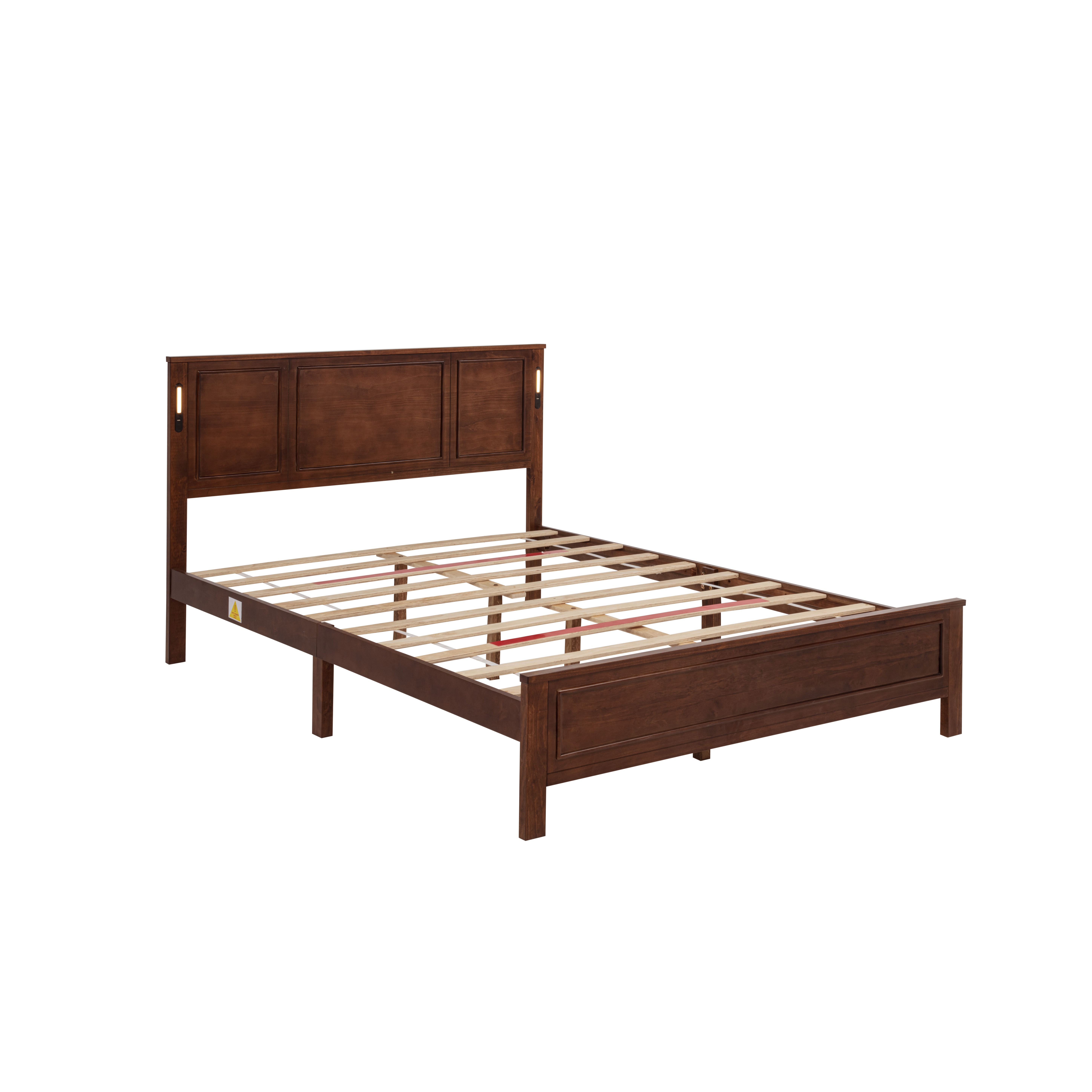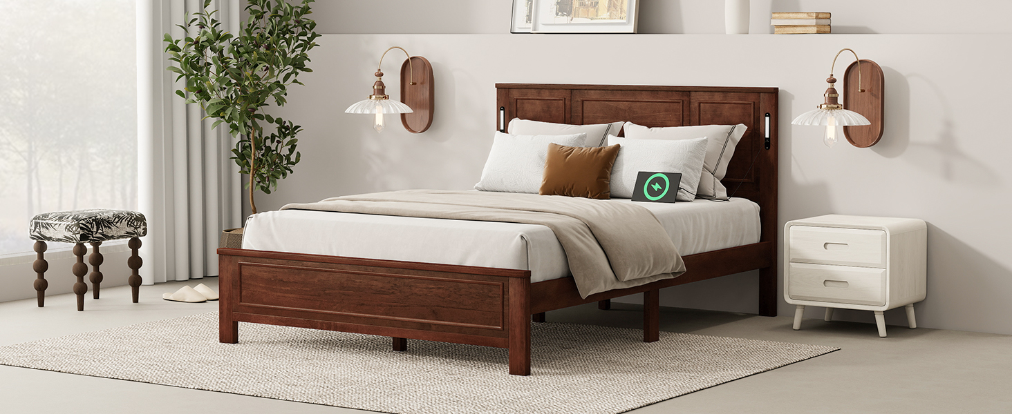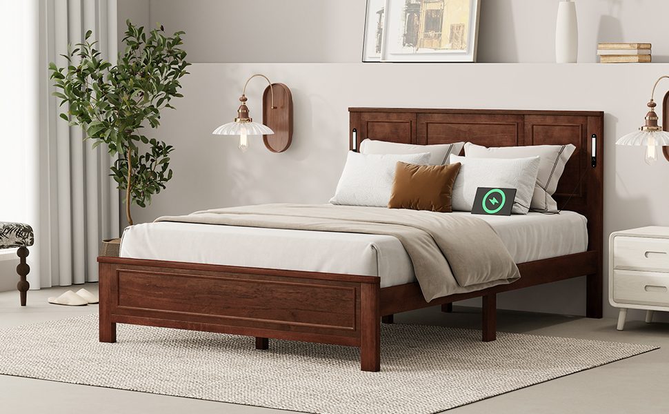 Product Name:Queen Size Bed with Tall-Panel Headboard & Footboard, Built-in LED Lights, USB Charging Station, Pinewood Bed with Strengthened Bed Frame ,Walnut