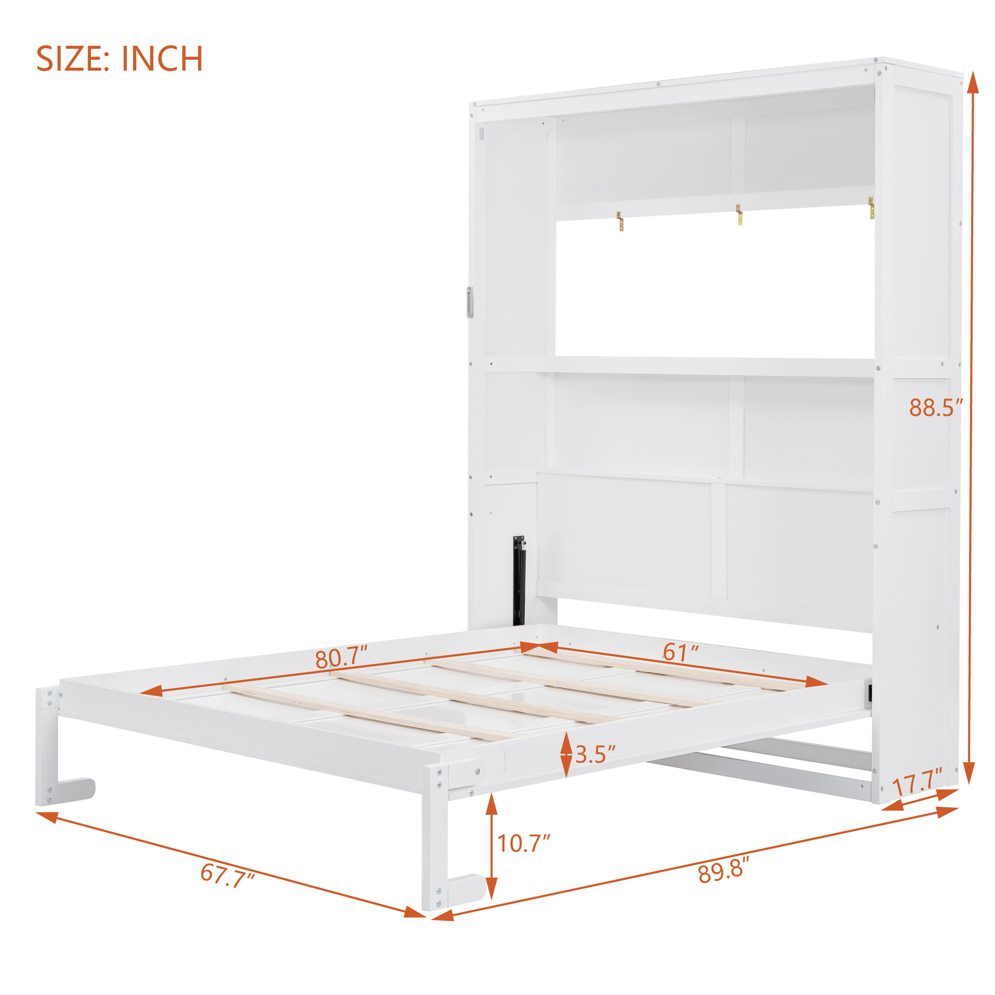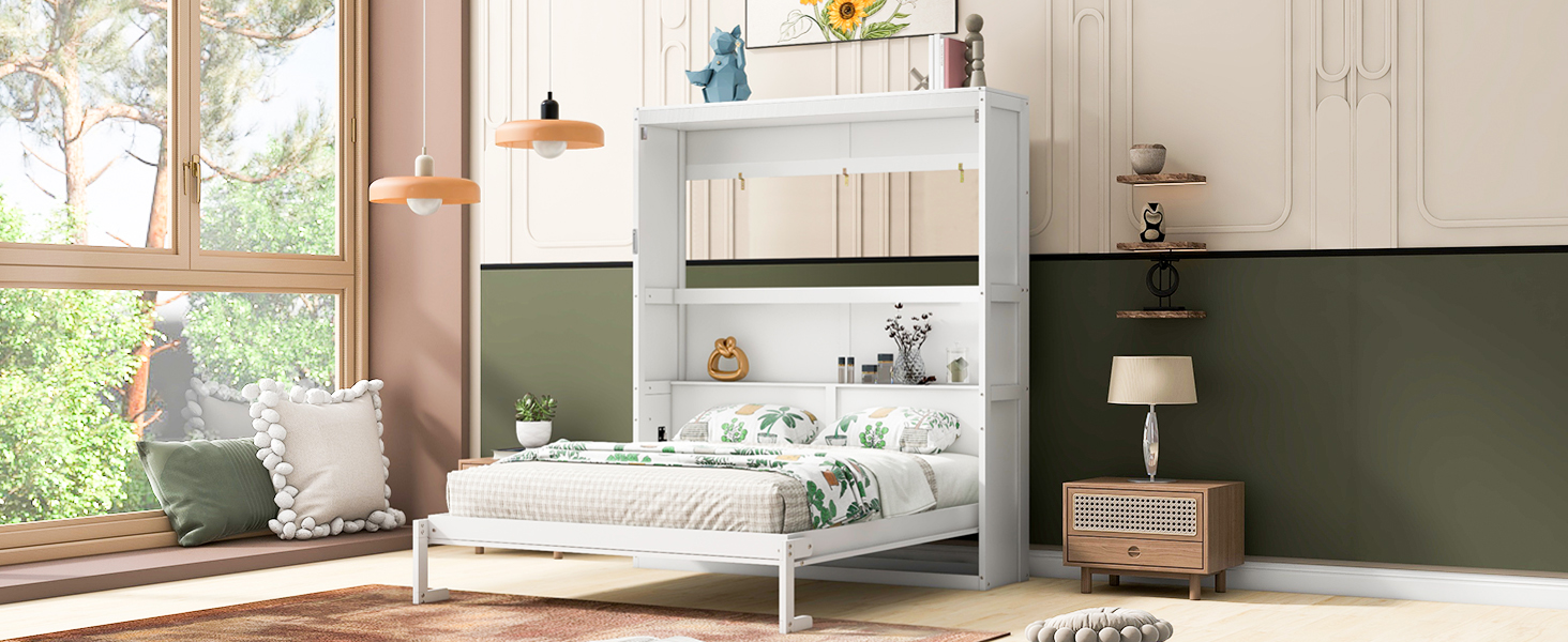 Product Name:Queen Size Murphy Bed Wall Bed with Shelves,White(OLD SKU: LP000693AAK-2)