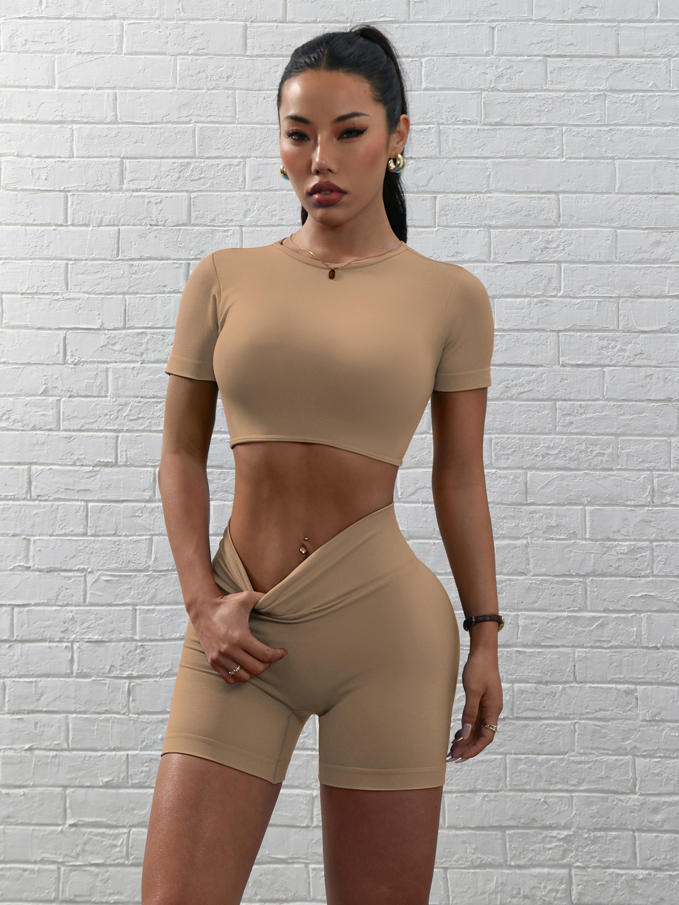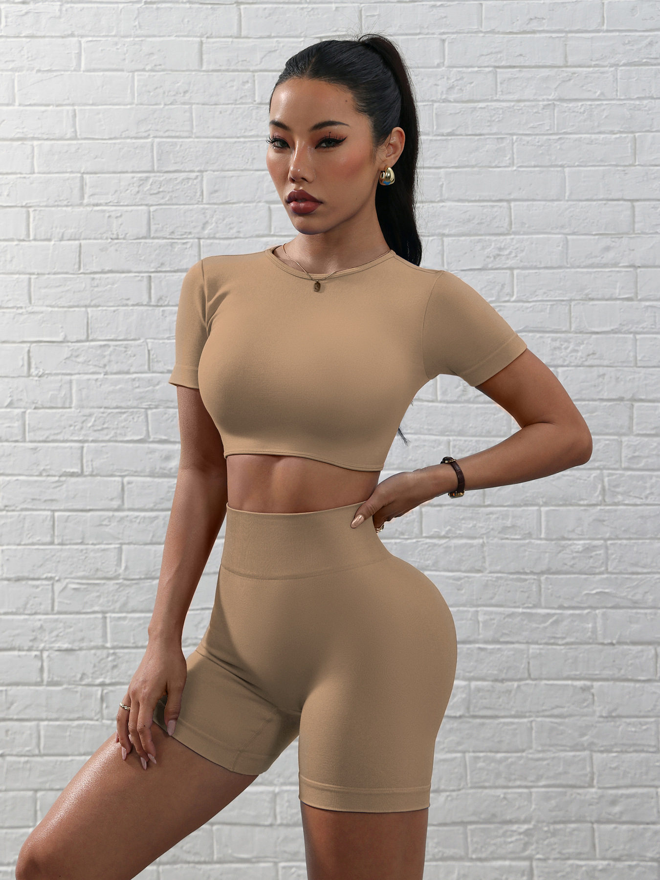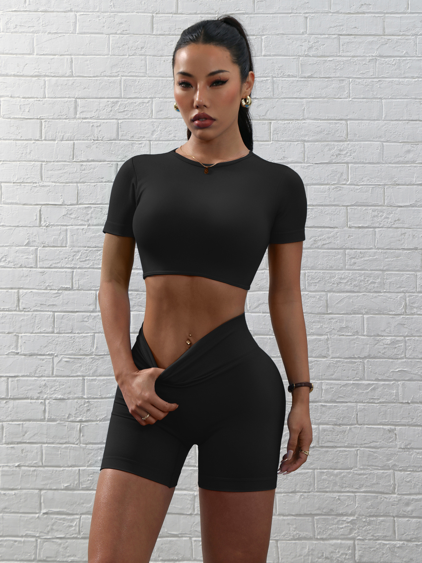 Quick-drying Bare-feel Beautiful-back Short-sleeve Yoga Outfit Set