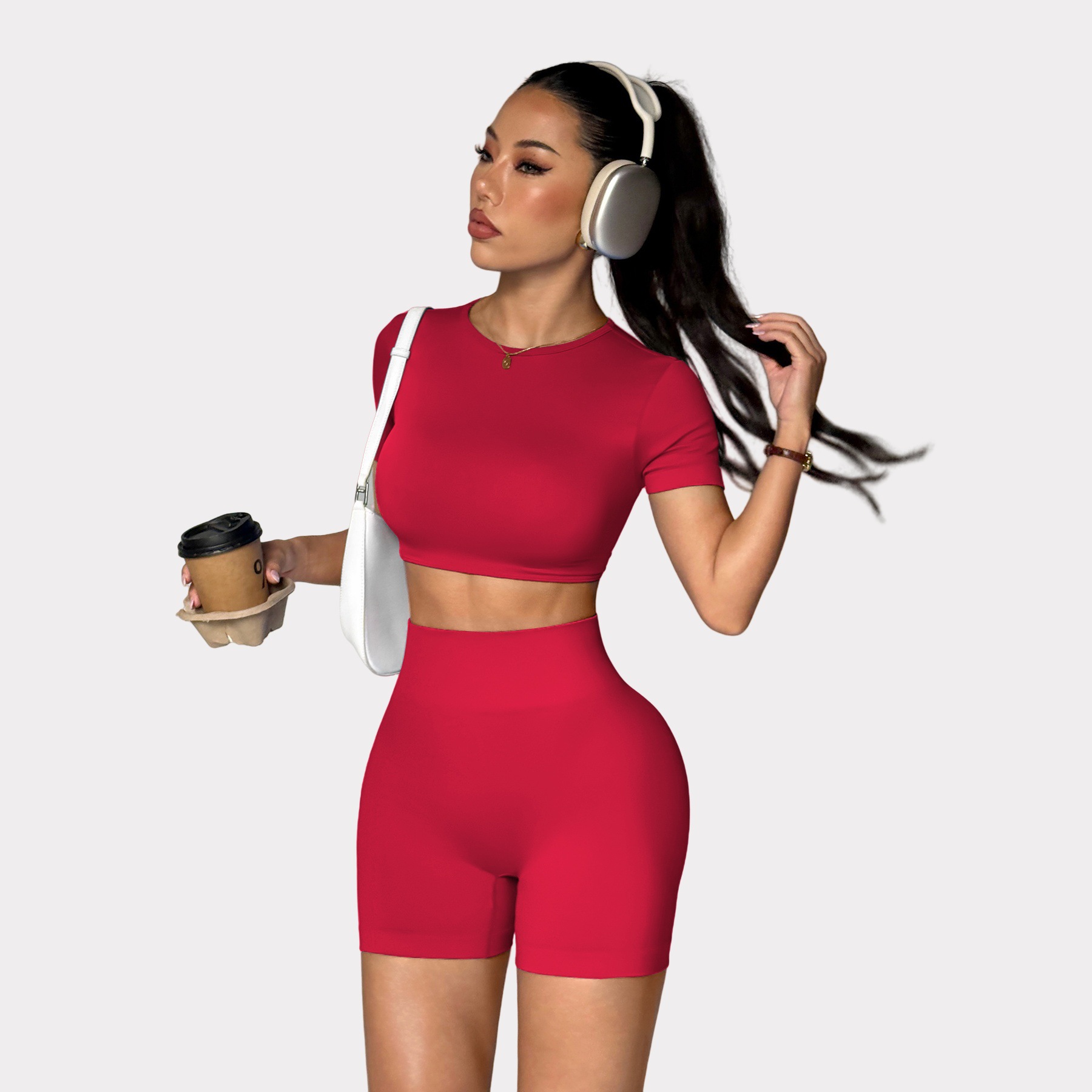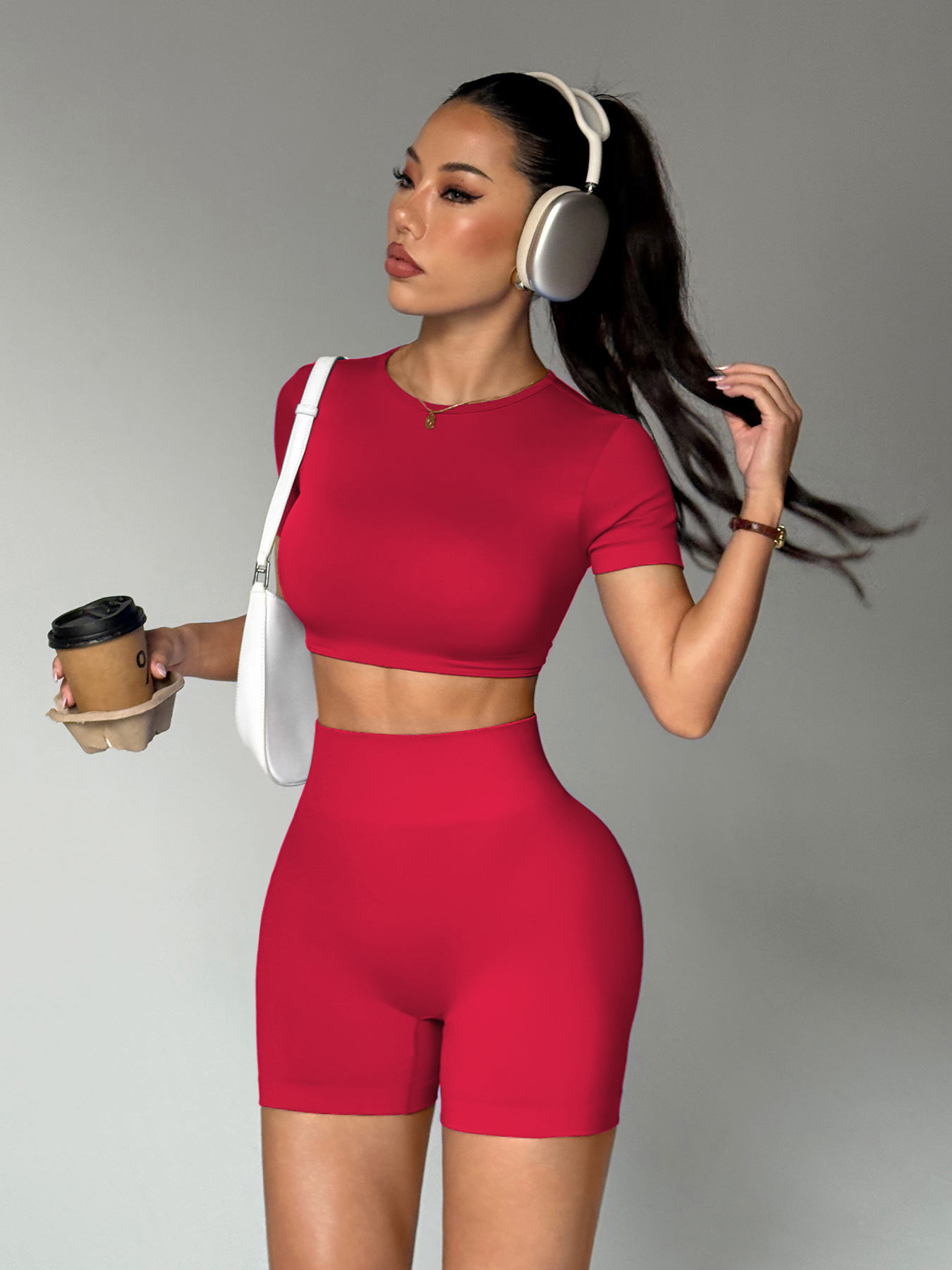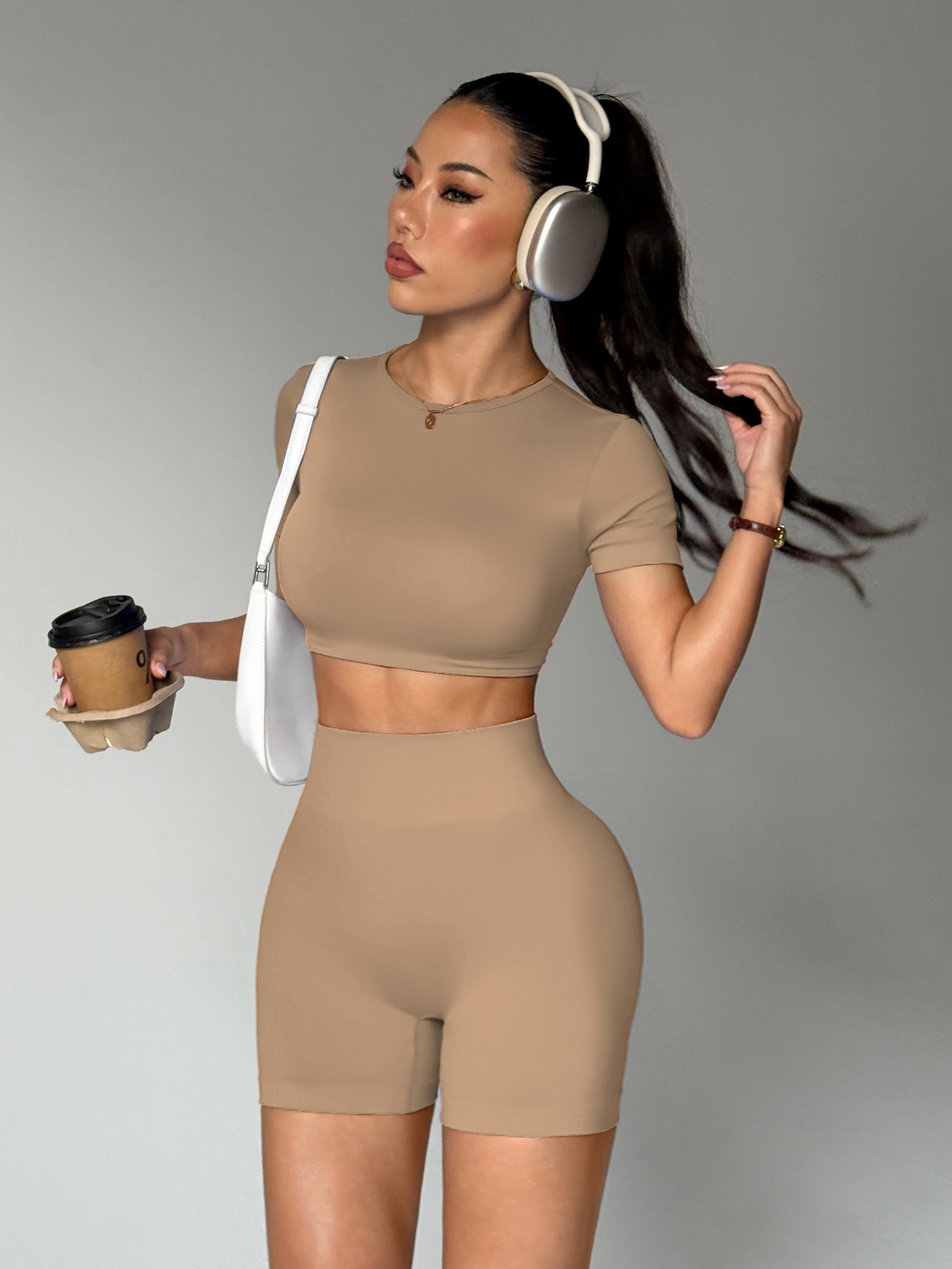 Quick-drying Bare-feel Beautiful-back Short-sleeve Yoga Outfit Set