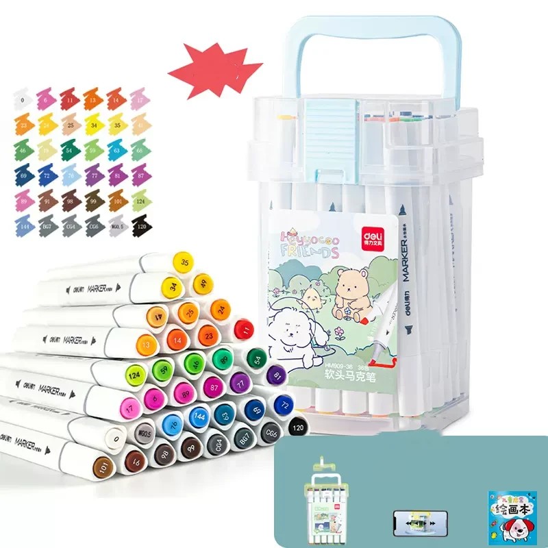 Features: elastic soft pen head, water-based ink, pure color, PP barrel