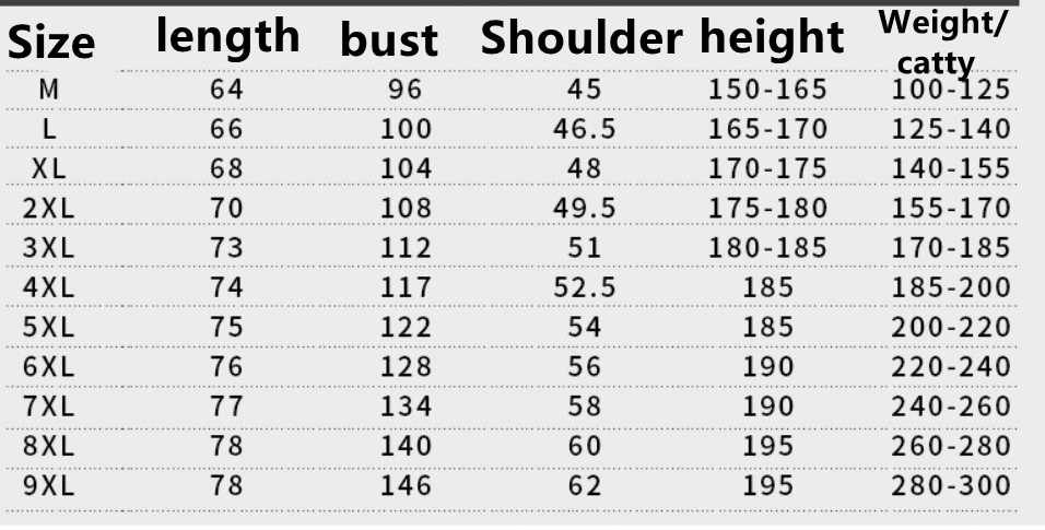 Size:S, M, L, XL, XXL, XXXL, 4XL, 5XL, 6XL, 7XL, 8XL, 9XL