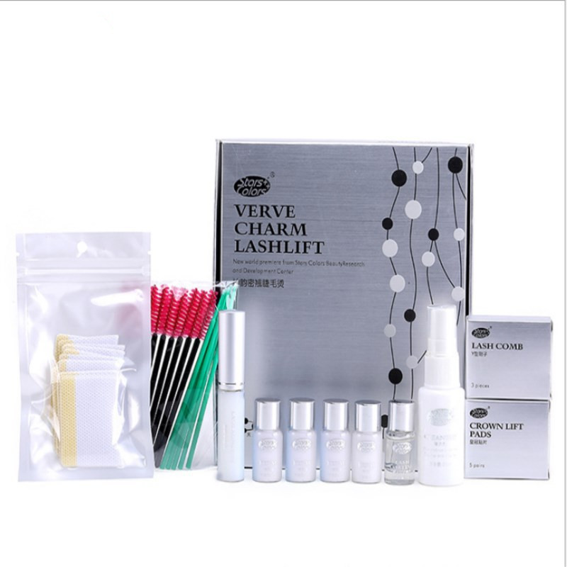 Washing agent 1 25ML + false eyelash glue 1 10ML +1 No. 1 ironing agent 2 5ML/piece; + No. 2 fixative 2 5ML/piece; + Protective raincoat 1 piece, 5ML/piece; + bag [20 pieces Color cleaning stick + 10 eyelash brushes (short)] + 10 packs of eyelash spacers + 5 pairs of boxed crown patches SS/S/M/L/LL; + 3 boxed Y combs