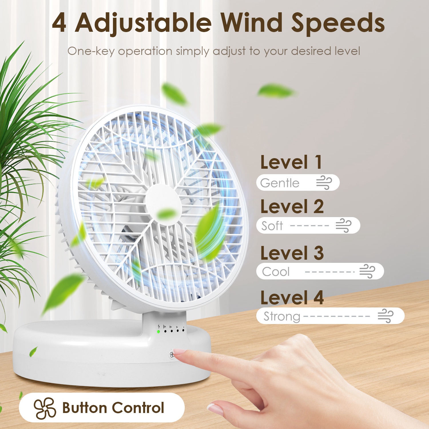 Quiet Table Fan 90 Degree Foldable Desk Fan With 4 Wind Speeds Type-C Rechargeable Wall-Mounted Fan Portable Desktop Fan For Home Bedroom Kitchen Office Outdoor Travel