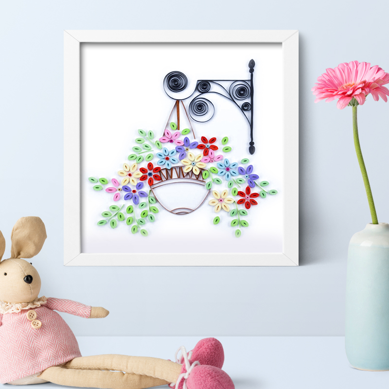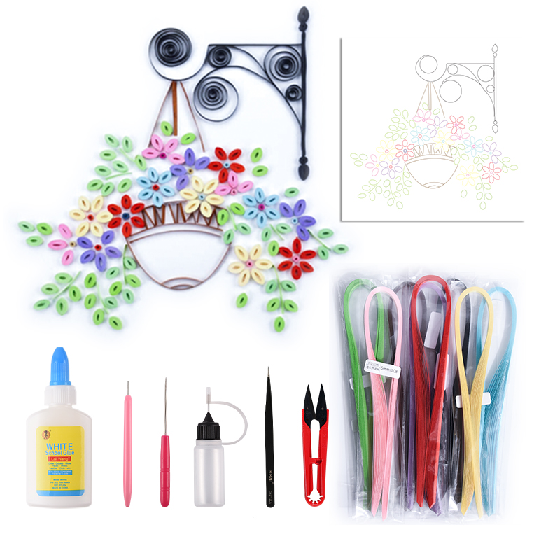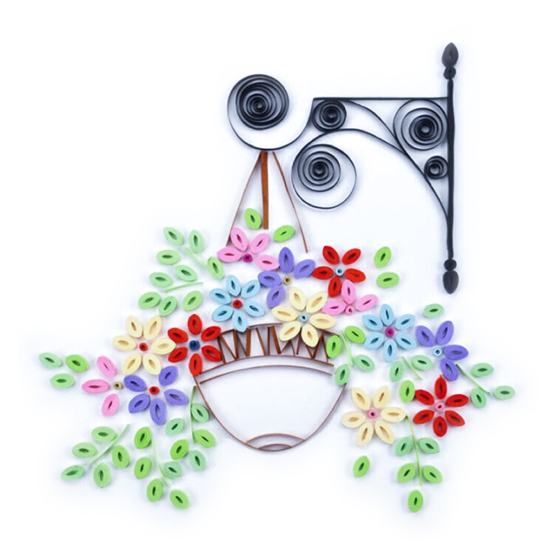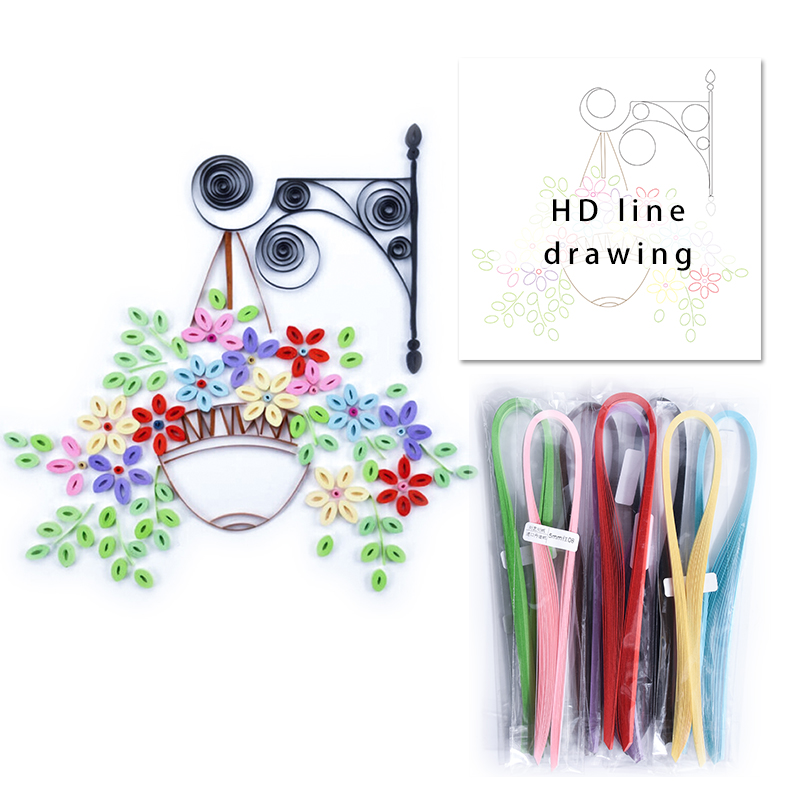 Color classification: 1: Hanging basket flower line draft + quilling paper 2: Cat and rose garden line draft + quilling paper