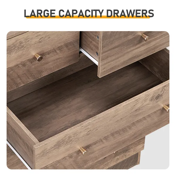 R279-9 Gray Particleboard With Textured Melamine Finish, 66*40*111cm, 4+2 Drawer Cabinet, Matte Gold Handles