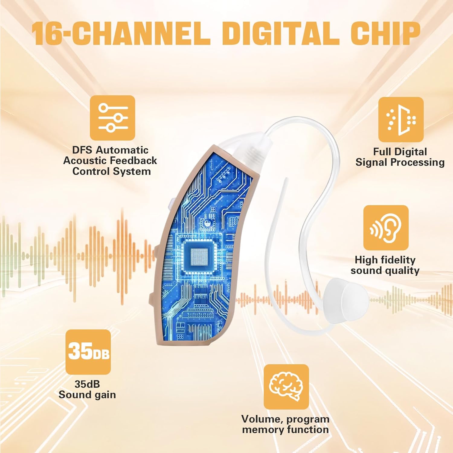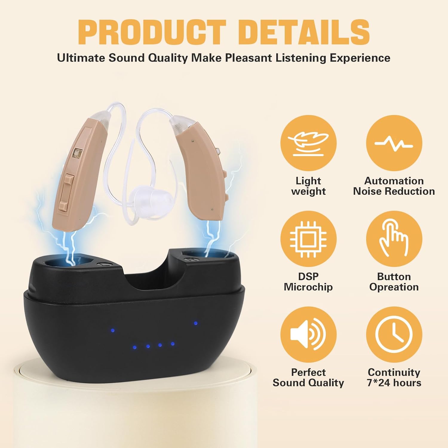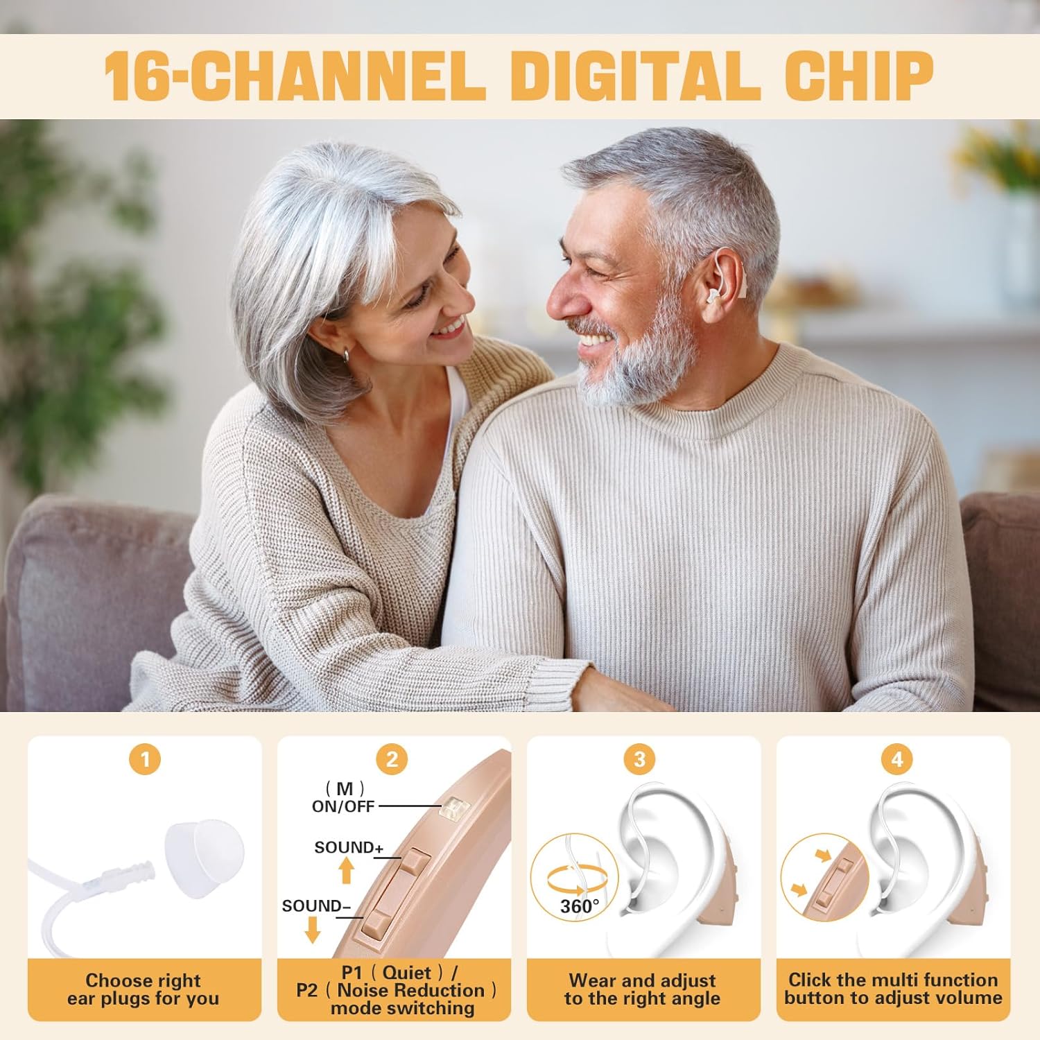 Equipped with a cutting-edge upgraded chip, the hearing aids bring you excellent hearing assistance. It intelligently optimizes for different sound environments, whether it's daily conversations, outdoor outings or indoor leisure activities, enabling you to accurately capture key sound information, communicate with the world smoothly and never miss any important moment.