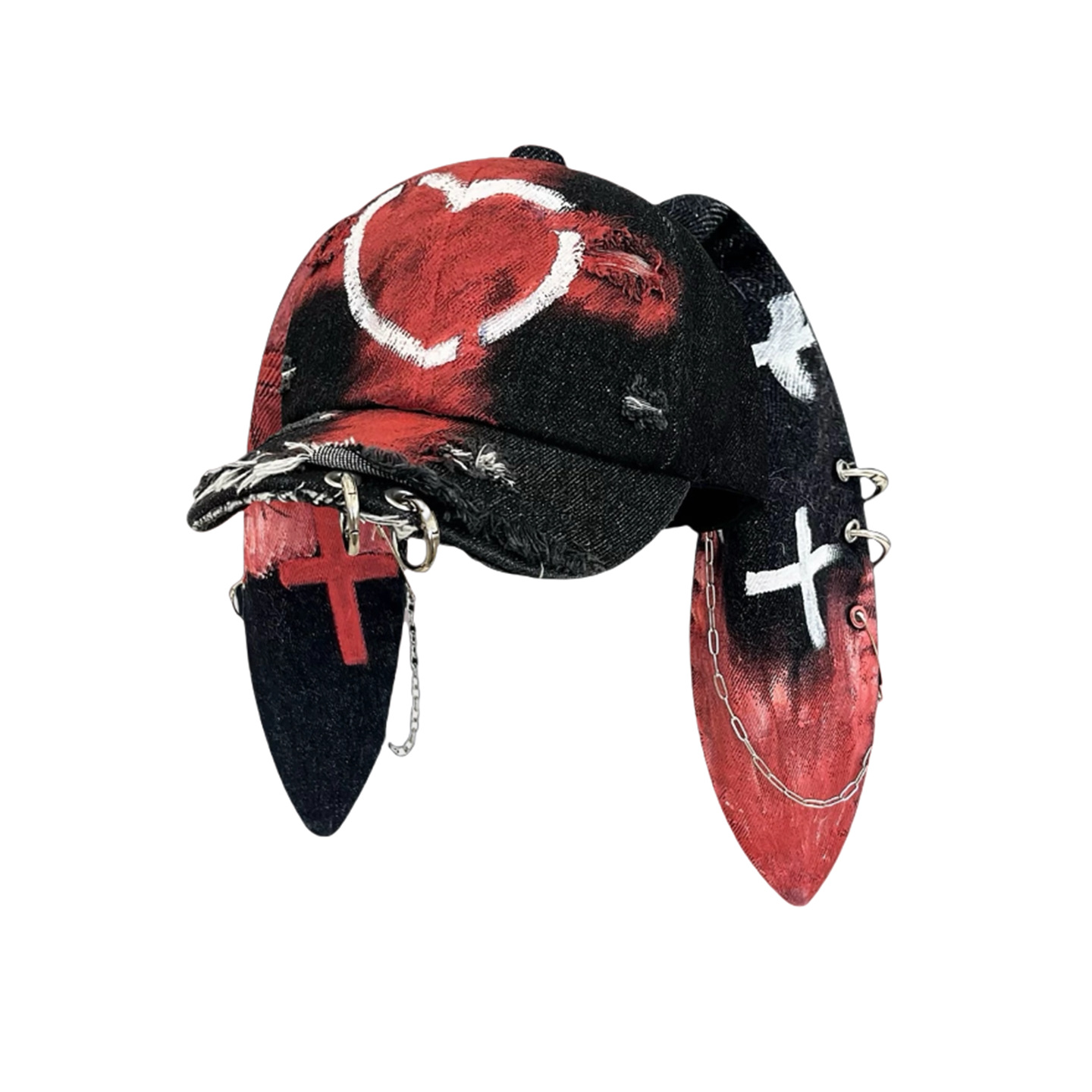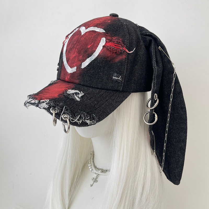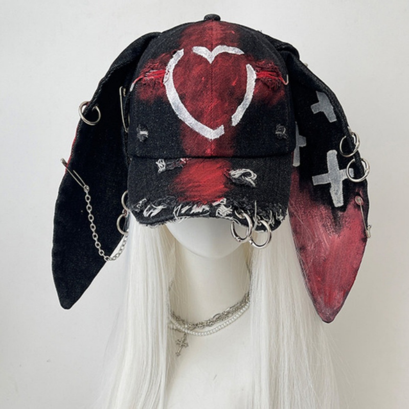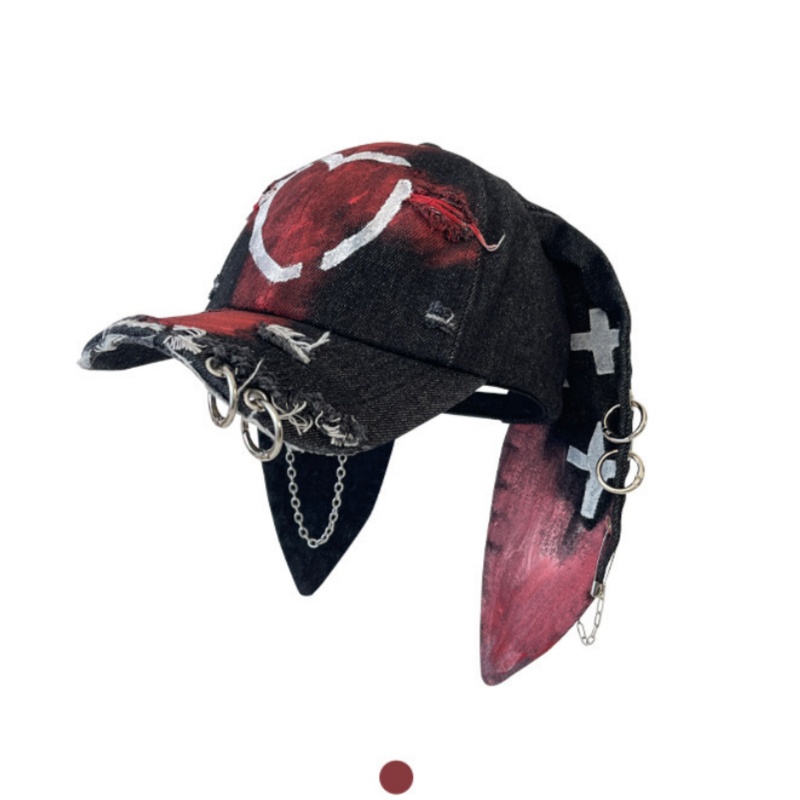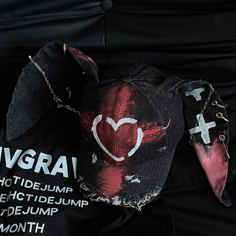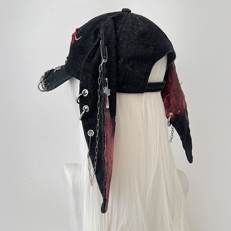 Rabbit-ear Cap With A Snapback Brim Denim-washed With Graffiti Design