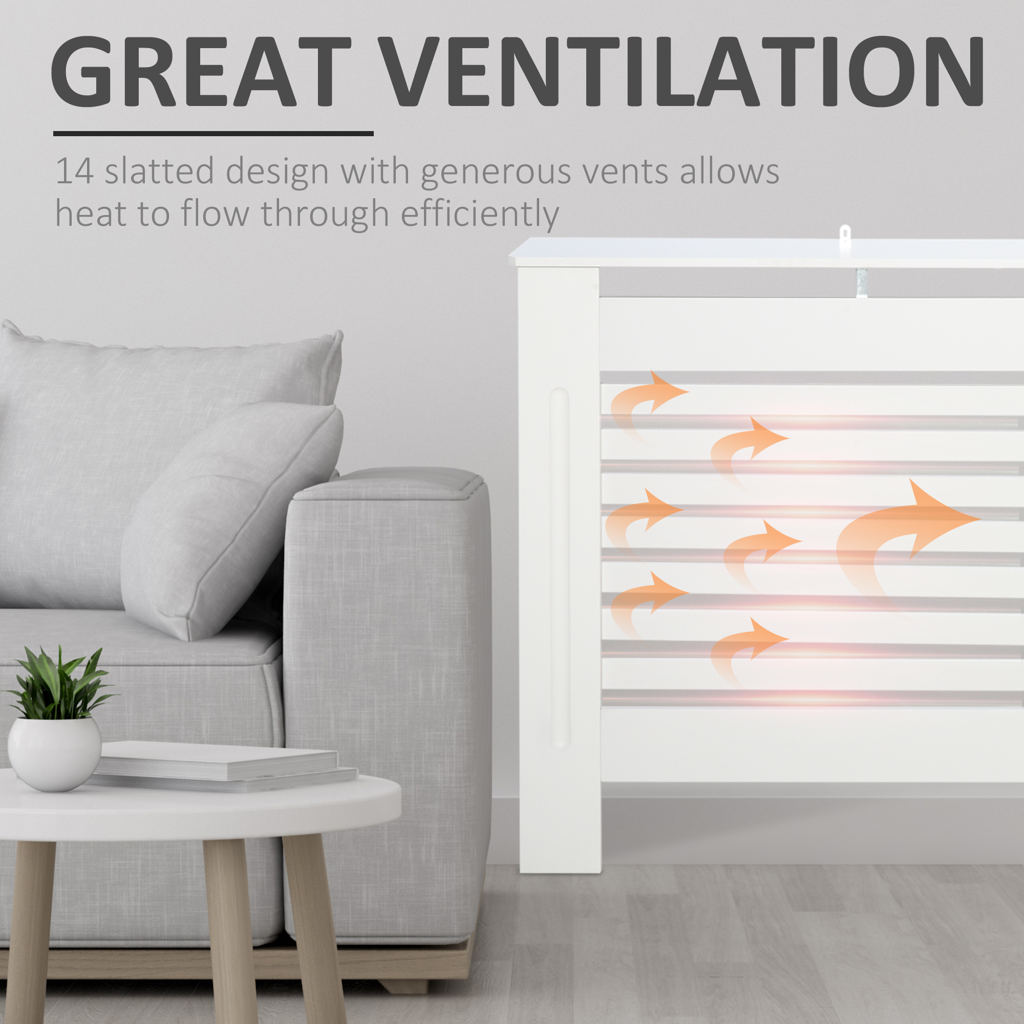 This modern radiator cover cabinet from is a designed to help hide old or unsightly radiator, protect hands from a hot surface and offer extra shelving for ornaments. The slatted design with sufficient vents allows for fluid heat flow while still preventing children and pets from touching the hot radiator surface. Manufactured from durable MDF in white finish for long term service, it is an elegant yet practical addition to your home and office.