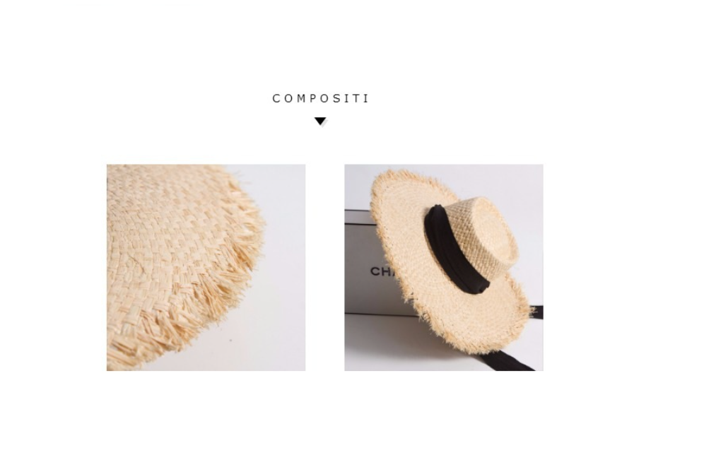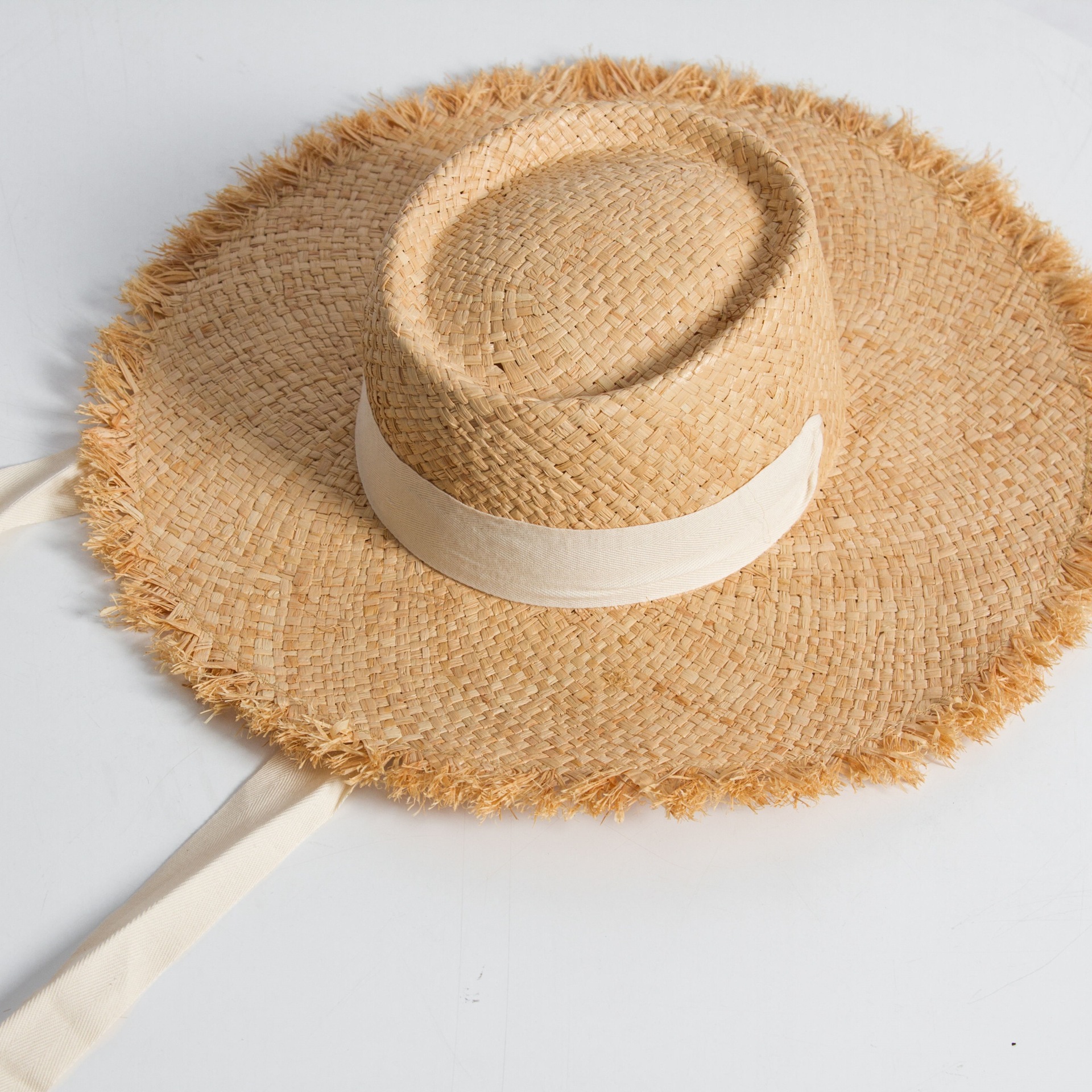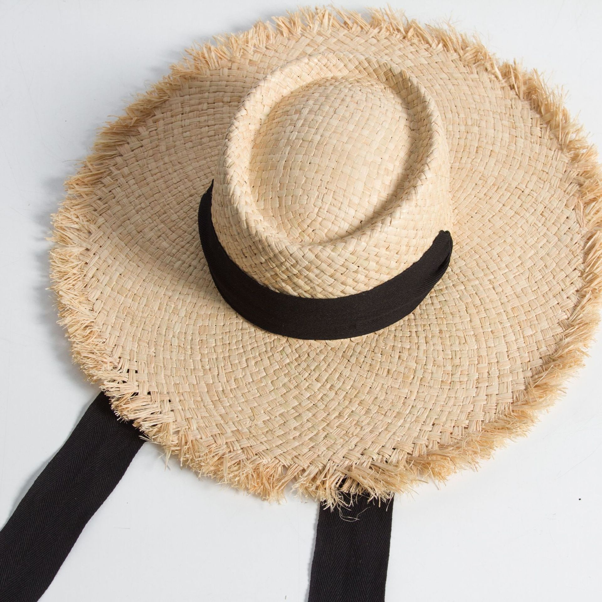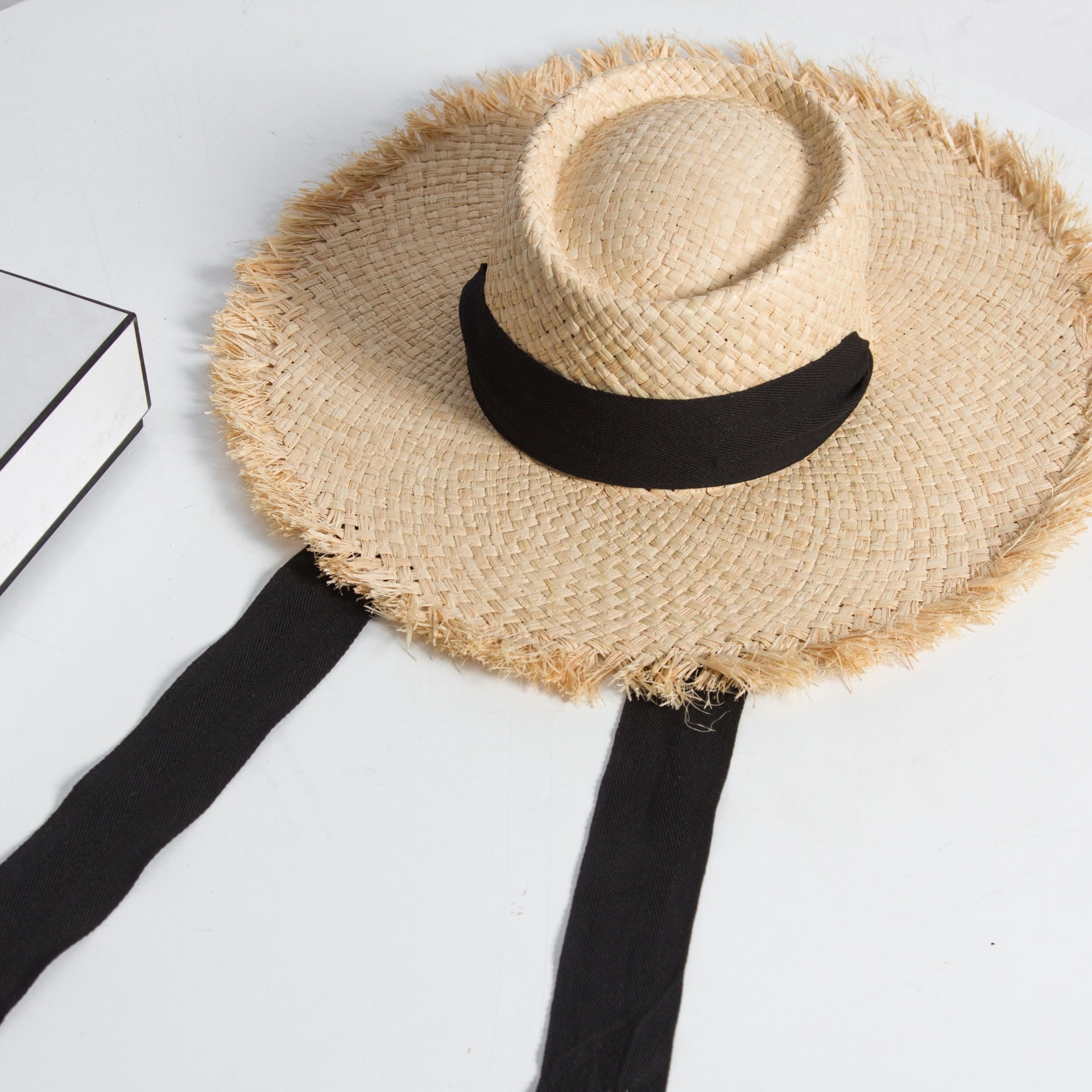 Raffia Grass Flat Top Raw Edge Binding Neck Sun Visor Hat Hand Braided Grass Hat