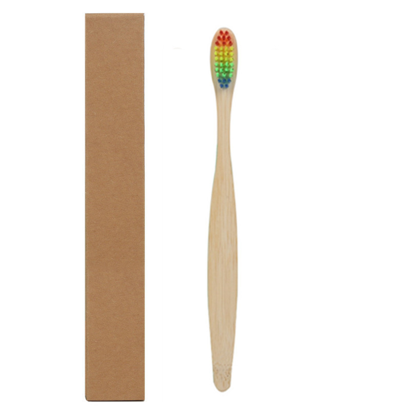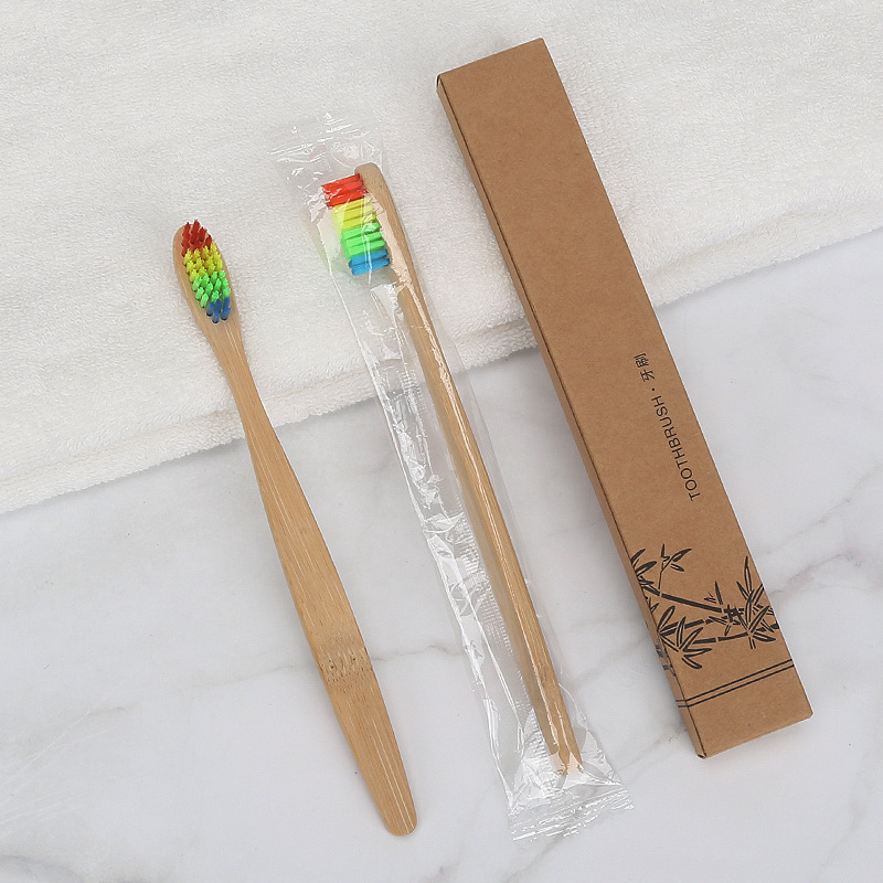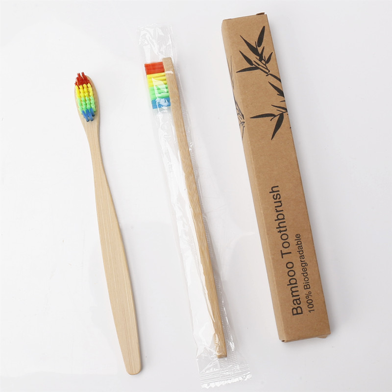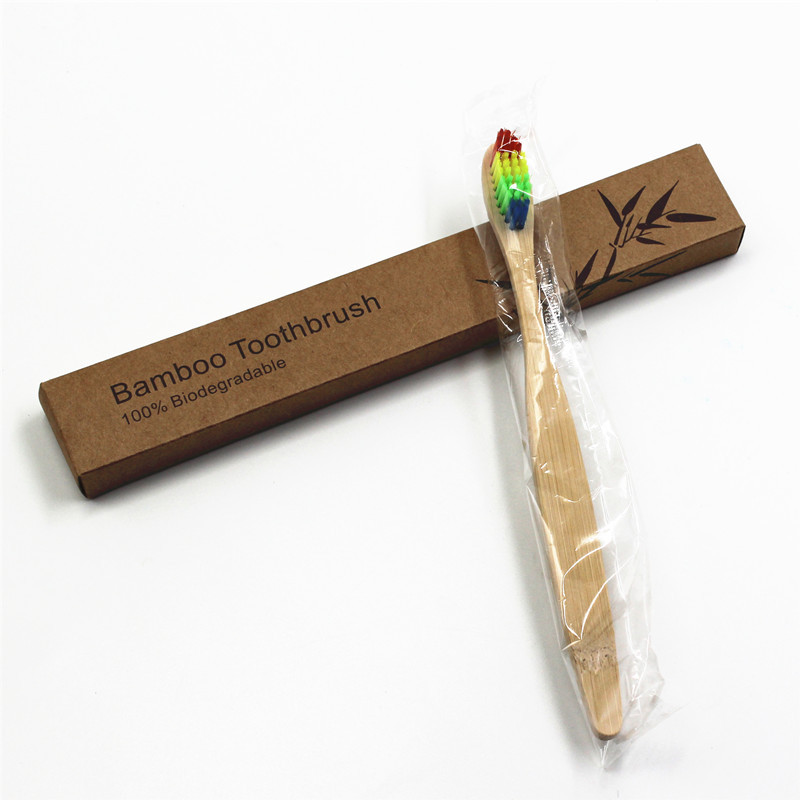 Set1:Rainbow-colored brush bamboo toothbrush OPP bag