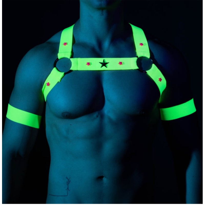 Color: fluorescent green (chest band+arm ring) fluorescent orange (chest band+arm ring)