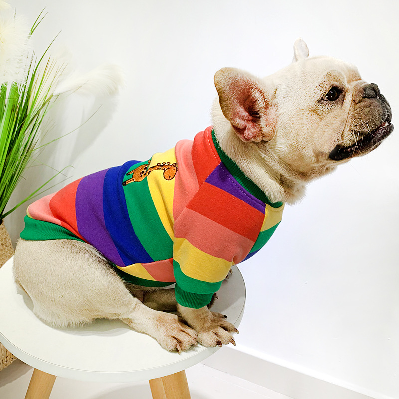 Autumn and winter new rainbow pet clothing plush thickened cat and dog sweater husky corky cotton padded clothes small dog clothes